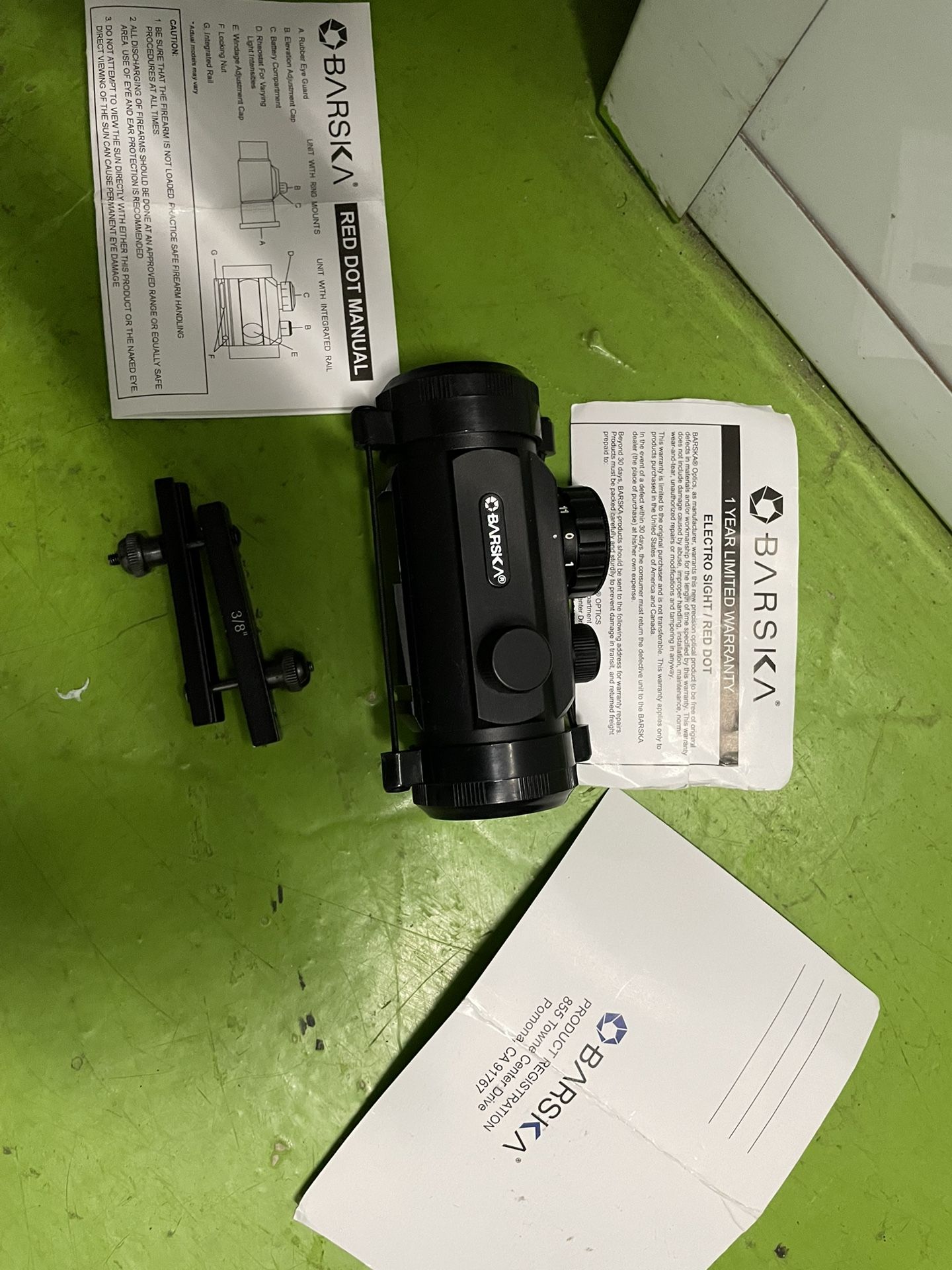Barisja red dot 133 mm scope never used no box but all contents are here mount warranty etc
