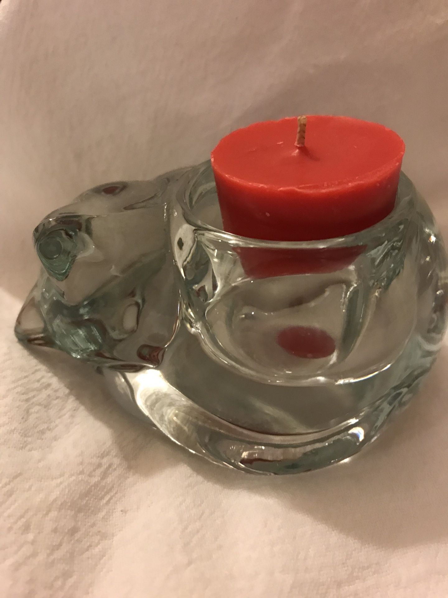 In perfect π condition. Vintage Cat Tea light votive CANDLE HOLDER Makes a great gift for your someone who is a cat lover. Super cute. Heavy crystal glass. Also makes a great paper weight. Appx. 5 β long and 3β wide.