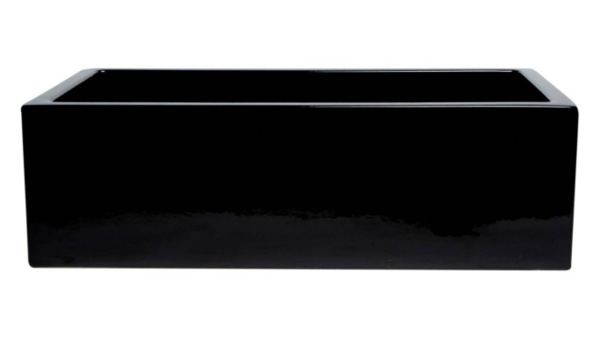 Selling an Open Box ALFI Brand AB3618HS-BG 36" x 18" Extra-Wide Single Bowl Fireclay Farmhouse Sink in a stunning Black Gloss (BG) finish. This item is in Like New condition—it has never been installed and shows no signs of wear. It is only listed as Open Box because the original packaging was opened for inspection. Key Feature - Reversible Design: This sink is finished on all four sides, giving you the flexibility to choose your style during installation. You can face the Fluted/Ribbed apron forward for a textured, high-end look, or flip it to the Smooth side for a clean, minimalist aesthetic. Handcrafted from authentic Fireclay, this sink is fired at over 2000^\circ\text{F}, creating a heavy-duty, non-porous surface that is highly resistant to heat, chips, and stains. At 36 inches, this is an extra-large sink that provides massive space for soaking even your largest pots and baking sheets. The Black Gloss finish offers a deep, mirror-like shine that is a total "shulada" for a luxury kitchen. LOCAL PICKUP ONLY. NO SHIPPING. Ready for local pickup. (Note: This is an extremely heavy fireclay unit; please bring help for loading).