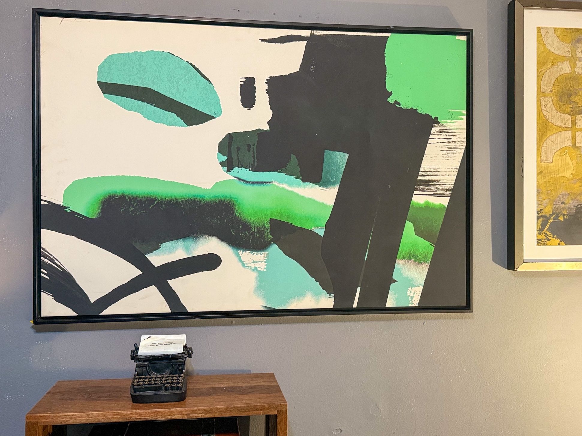 B eautiful abstract Art on framed canvas 30” x 50” Versatile in style , great condition, pickup in Miami , priced to sell