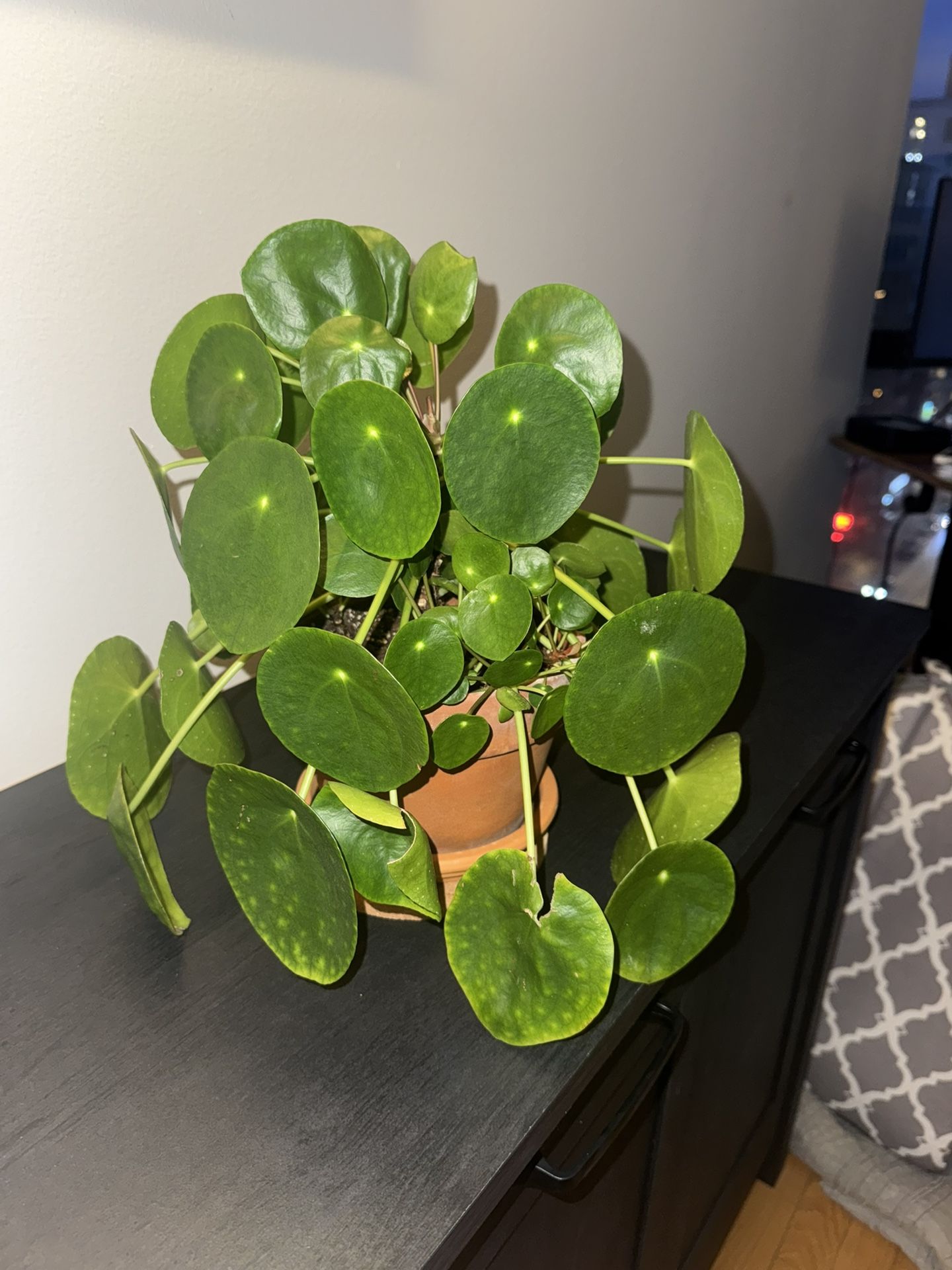 Large Chinese money plant (with pups) in Terra cotta pot. Pick up in River North by Wed.