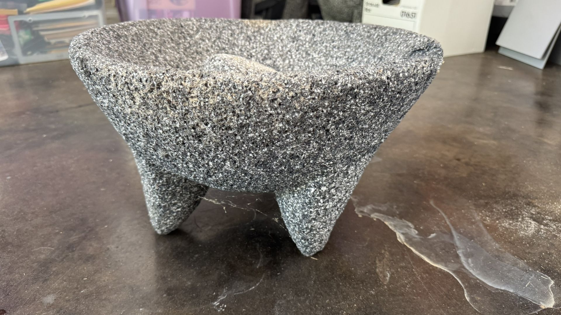 Large Molcajete from Mexico Made in Mexico and purchased in Mexico. Color grey as pictured. Black stone piedra negra. (black stone is not black and it's the name of the lava stone) This lava stone is more heat resistant than regular ones. To use for making guacamole and salsa. Nice to have for gatherings and hosting dinners. The bowl is hand made. Too heavy to ship only in person pick up.