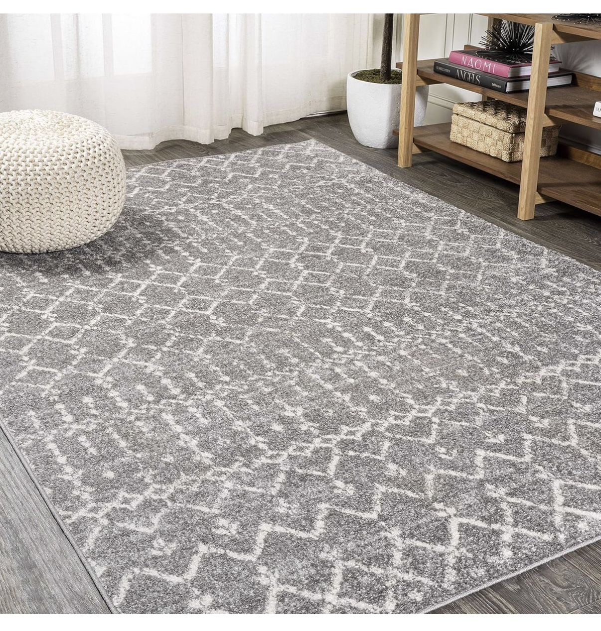 JONATHAN Y Boho Vintage Diamond Gray/Ivory Indoor Area Rug 4X6 ft, Moroccan Hype for Living Room, Bedroom, Kitchen, Office, Easy-Cleaning, High Traffic, Pet-Friendly, Non-Shedding (MOH101C