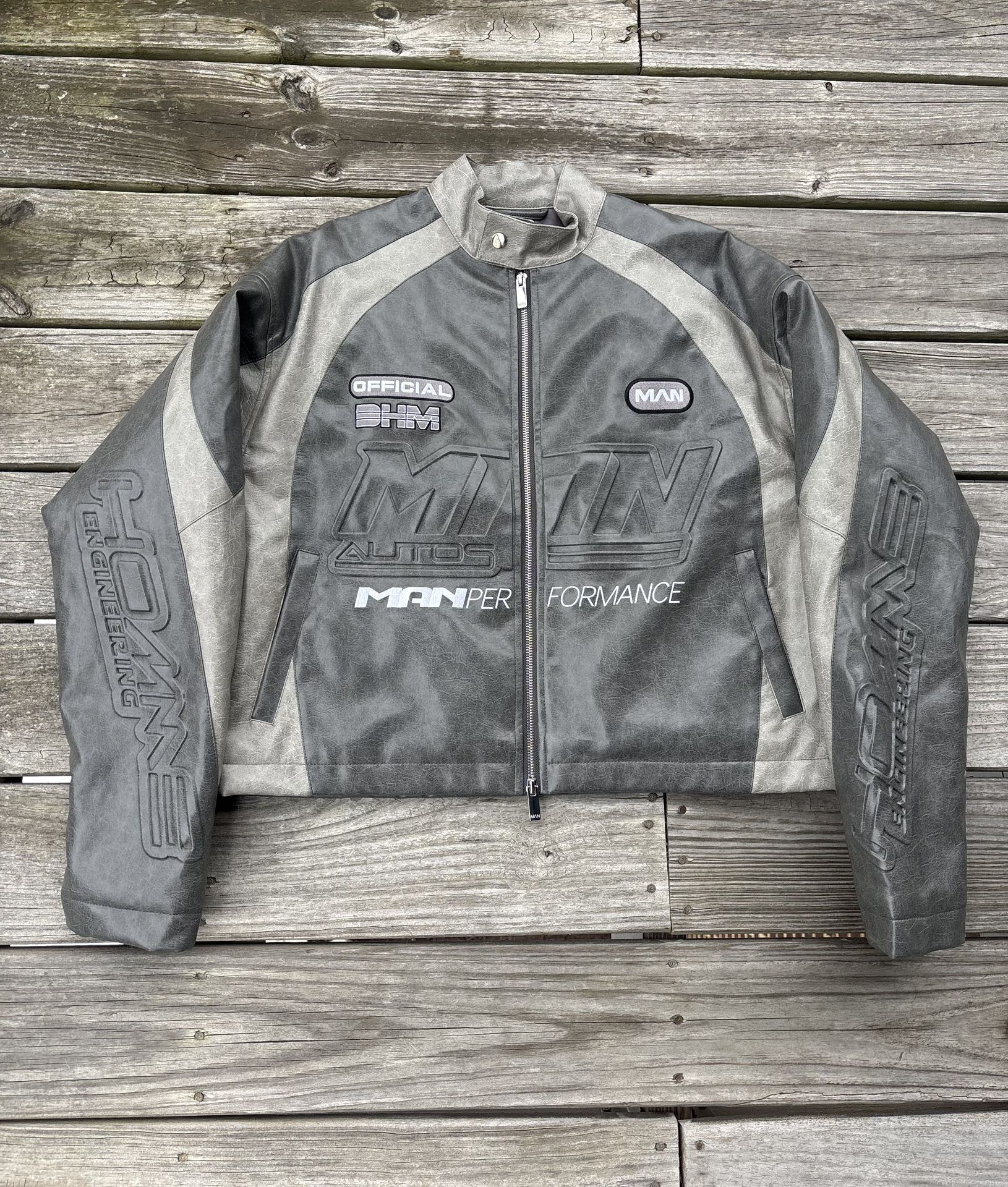 grey leather jacket with zipper and button closure /FOLLOW THE GRAM - 1ofnun.sales #brandnew #leatherjacket #boohooman