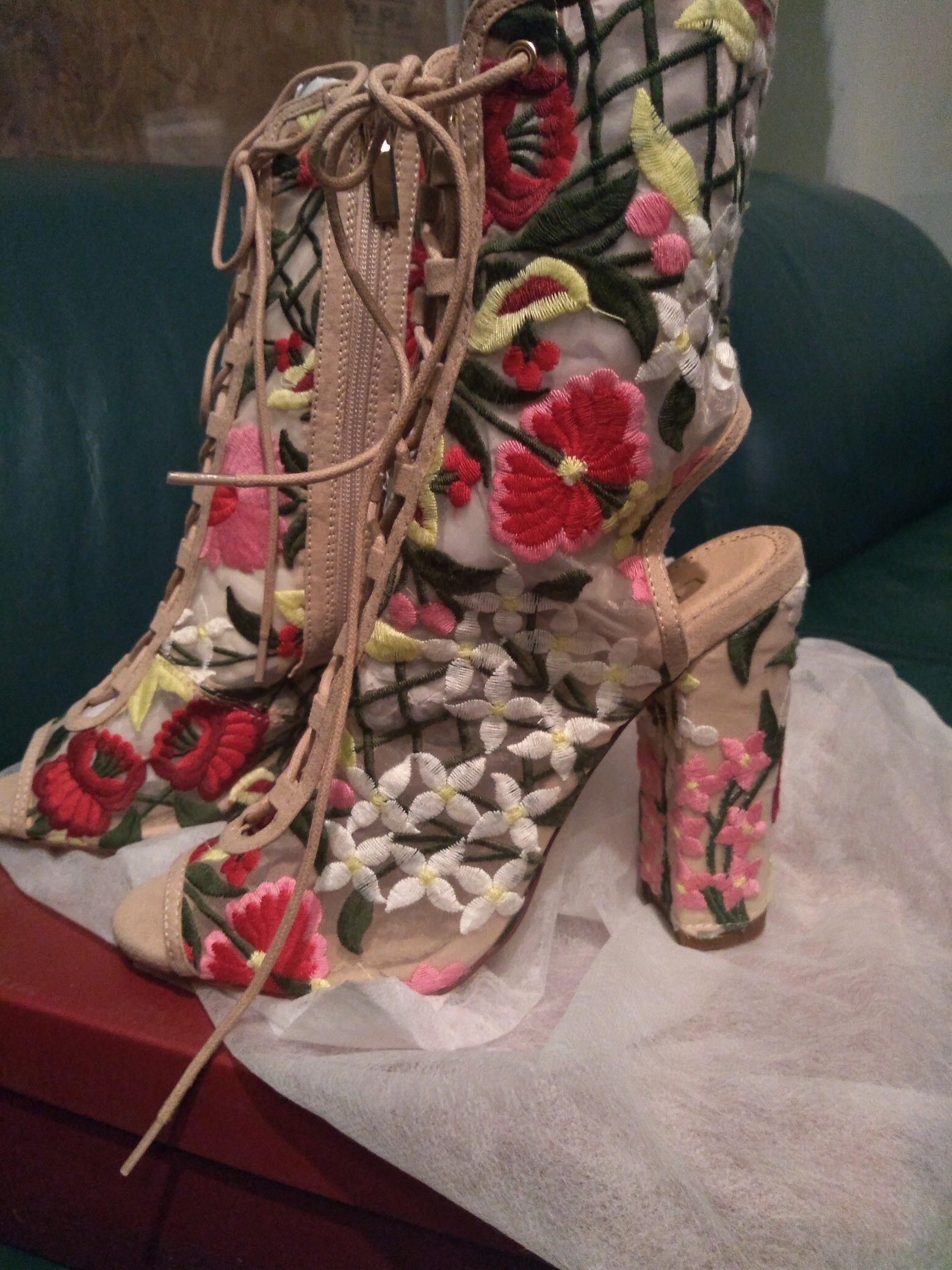 Beautiful Peep Toe Floral Booties