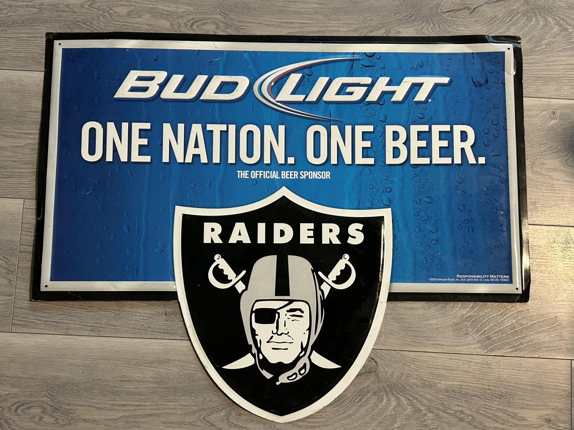 2010 Bud Light Raiders Metal Shield Sign – One Nation One Beer – 29" x 23"