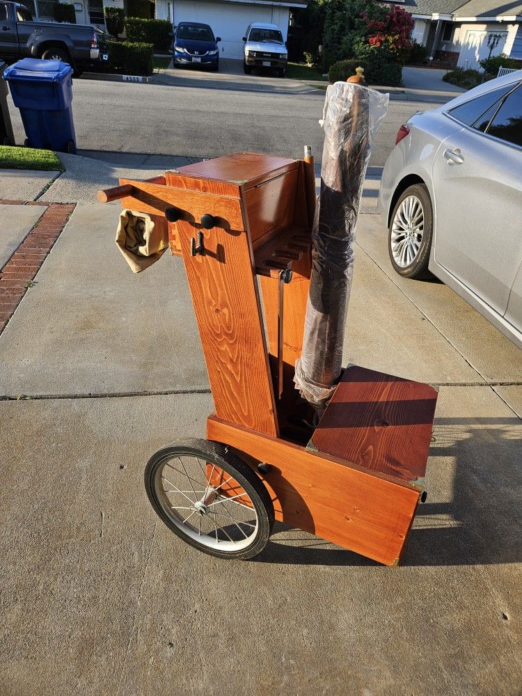 Study & Handsome gun cart includes umbrella. Has several storage areas for all your gear. Holds rifles, ammunition, and coolers. It is for SASS shooting competitions, and it has been LIGHTLY used. Comparable shooting carts range from $300-$500, asking $400.