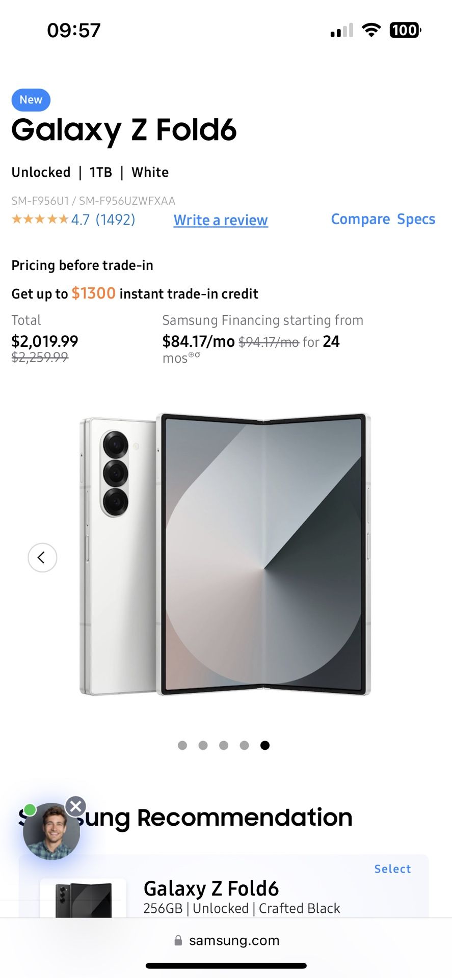 Galaxy Z Fold 6 In-box, unlocked (any service) 1TB