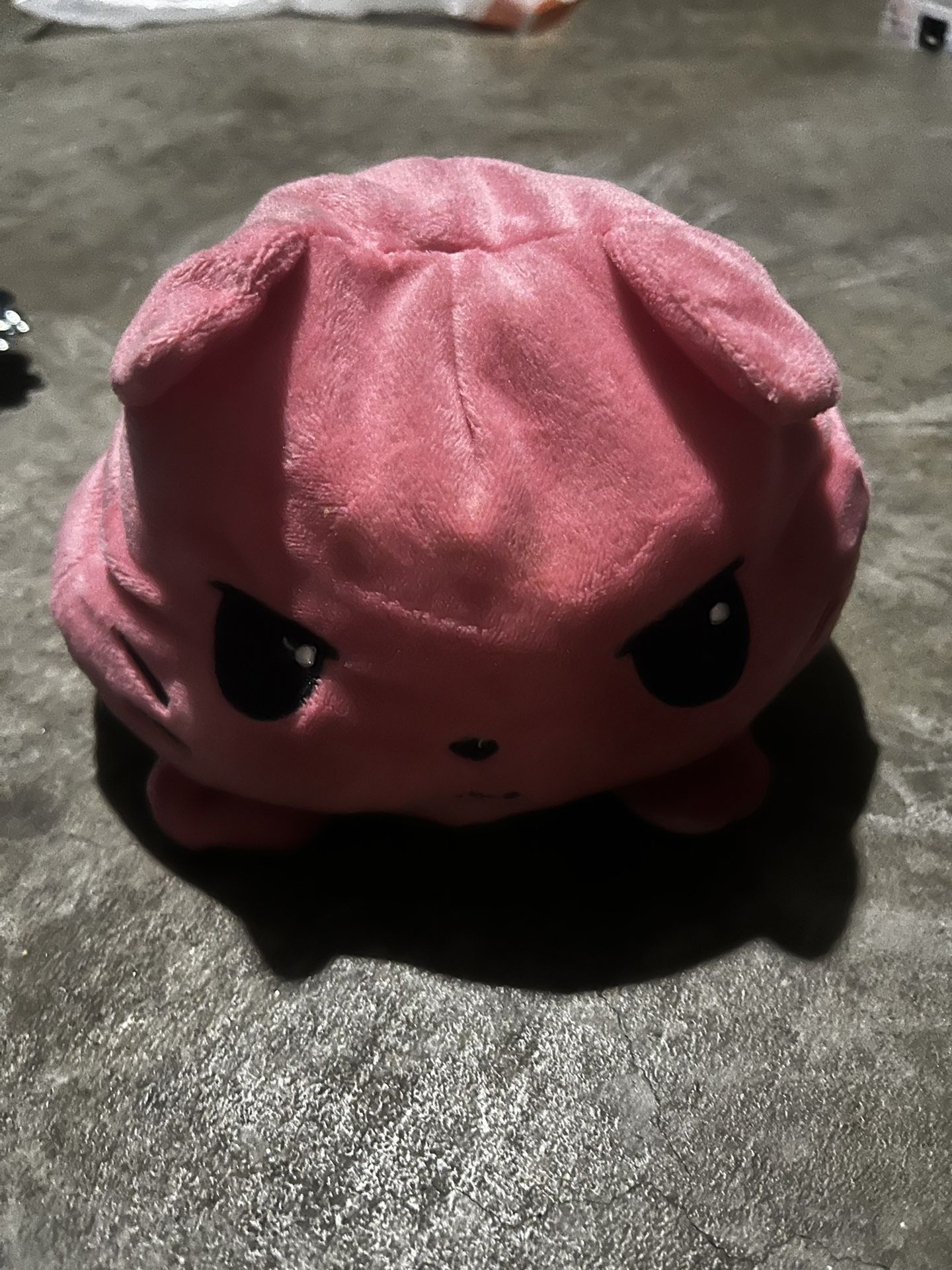 Small plush cat that turns inside out for happy or mad