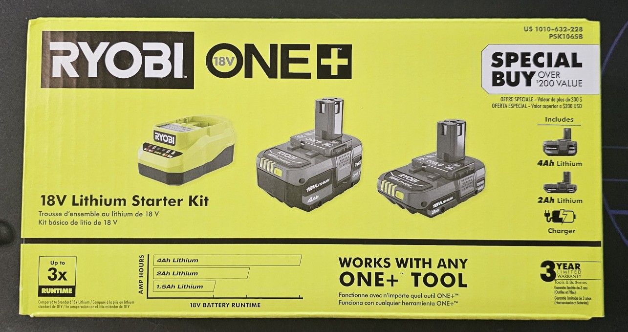 Ryobi ONE+ 18V Lithium-Ion Battery Kit