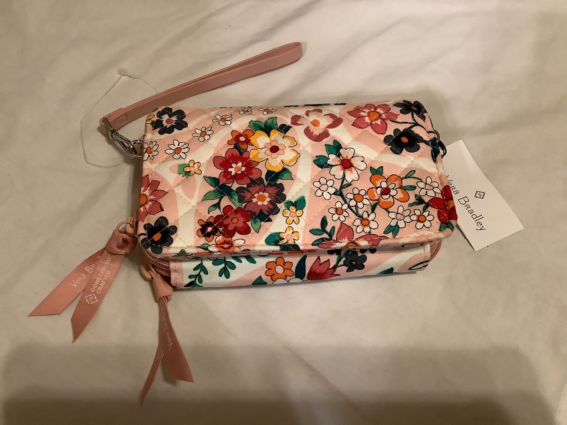Brand new beautiful salmon colored Vera bradly wristlet wallet with multiple compartments. Can hold lot of items. Still has tag attached to it.