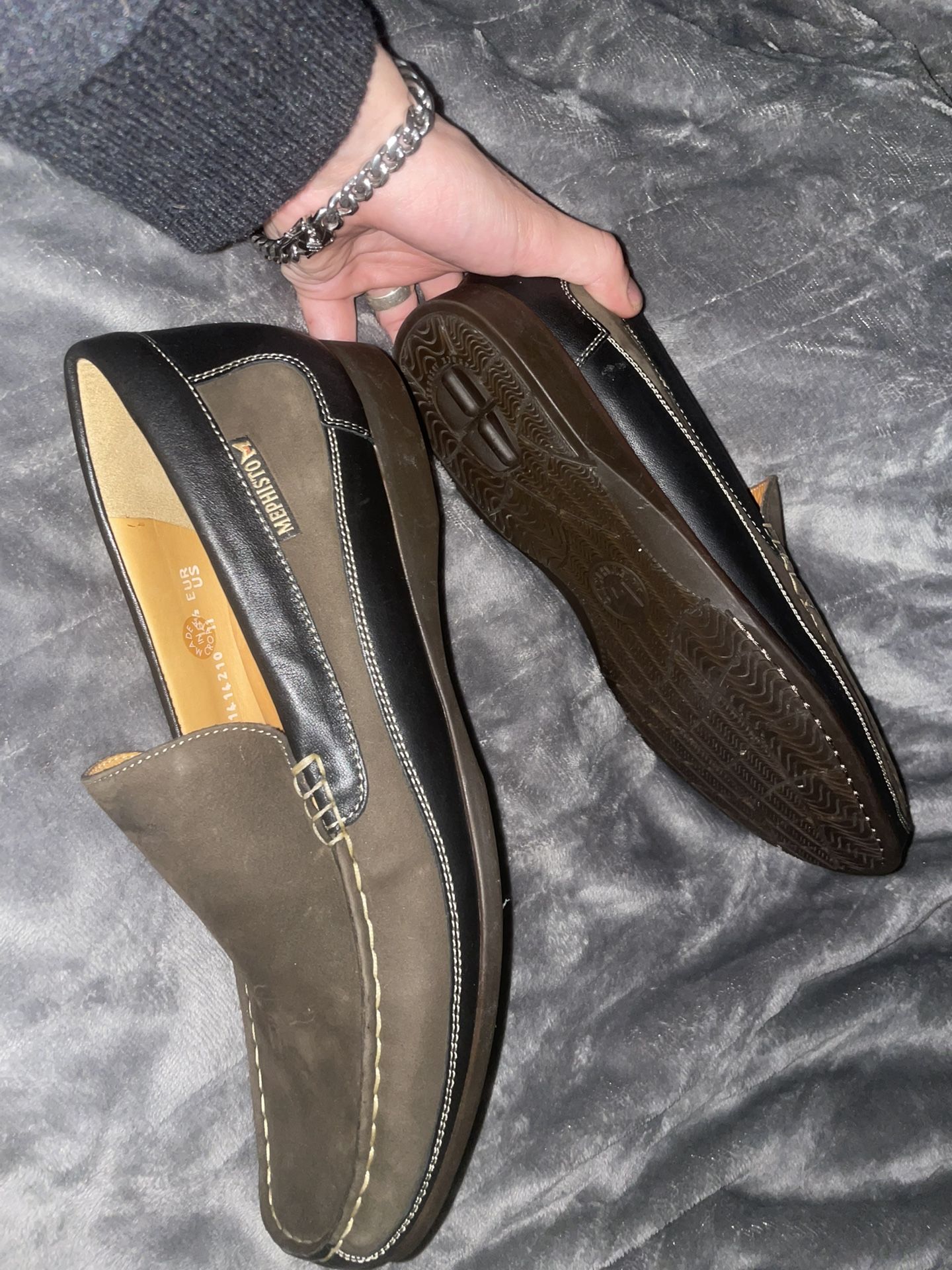 Asking 320 OBO Size 11 Worn once Mephisto loafers two tone black and brown leather No box Would like gone as soon as possible
