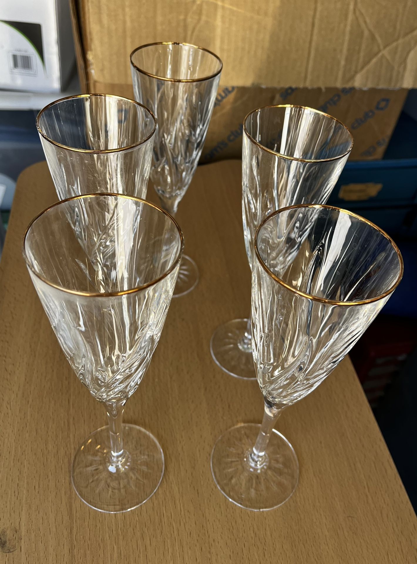 Set of Five 24% Lead Crystal Wine Glasses .all in excellent condition .