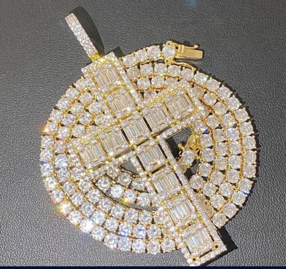 Brand New 14k gold Finish fully Icedout baguette cross pendant with premium quality tennis chain!! Length available: 18,20,24,30 inches and 4’mm Free nice gift box Local pickup available Sameday Shipping!!