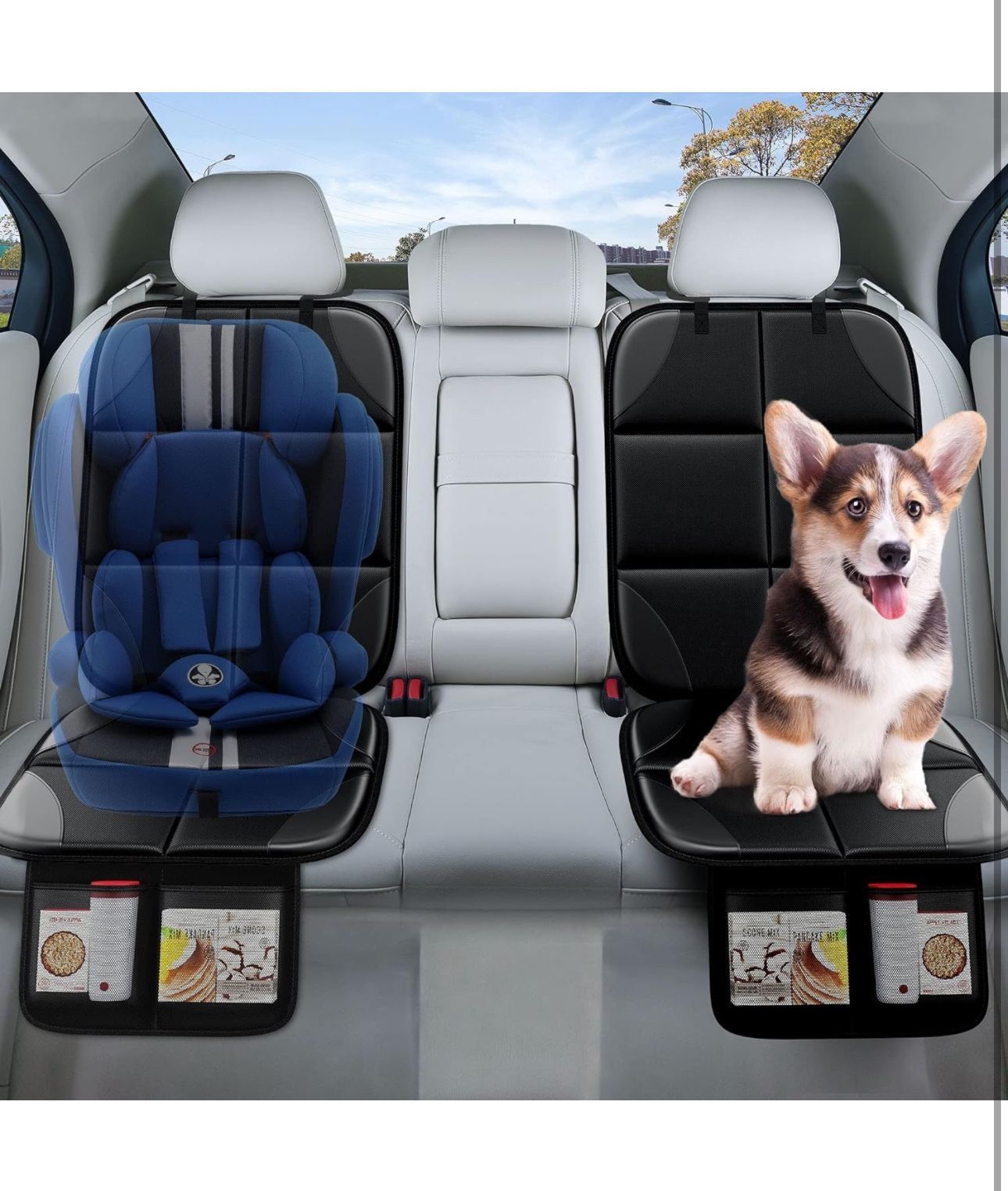 Brand new Car Seat Protector MHO+All 2 Pack Auto for Child Baby Car Seats - Large CarSeat Sit Savers Mat with Waterproof 600D Fabric & 2 Storage Pockets, Crash Test Approved