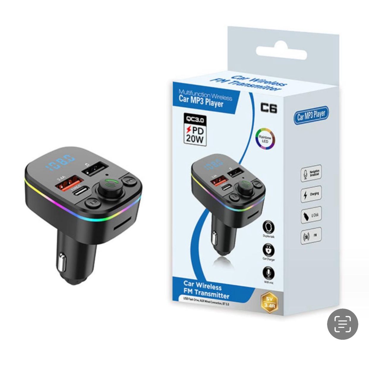 New models available. Quick charge 3.0. 20W Power delivery Brand new in a box - C6 FM BLUETOOTH CAR CHARGER - DUAL USB FM TRANSMITTER MP3 player SUPPORT Black color available