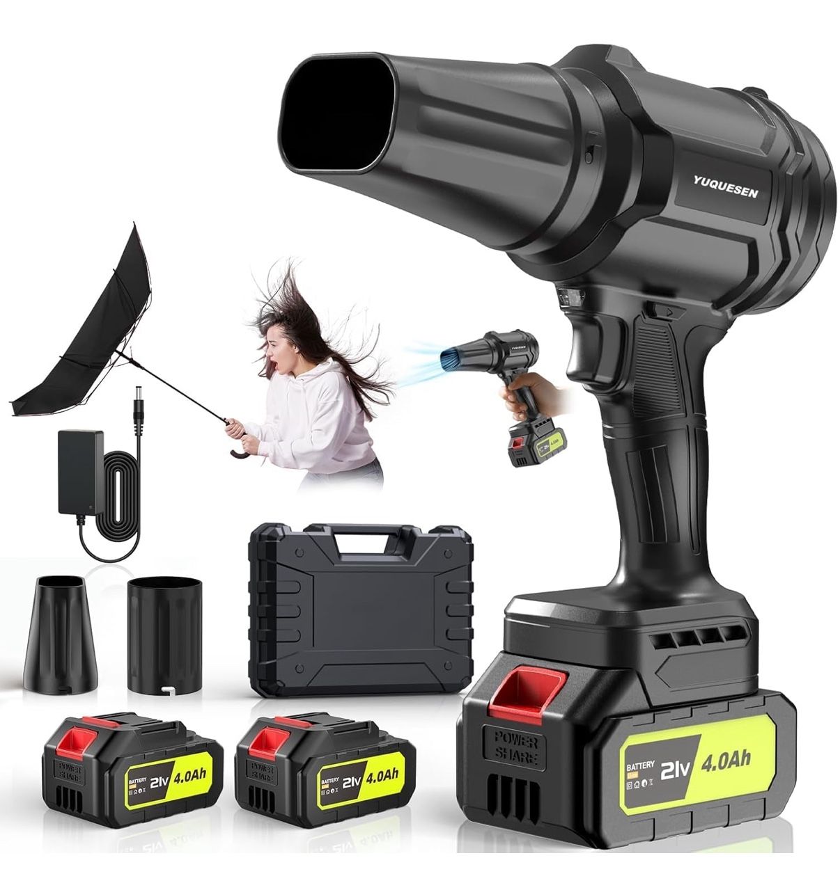 Cordless Leaf Blower, 980,000 RPM Handheld Leaf Blower with 2 X 4.0Ah Batteries & Charger, Lightweight Leaf Blowers for Patio Cleaning, Lawn Care, Lea