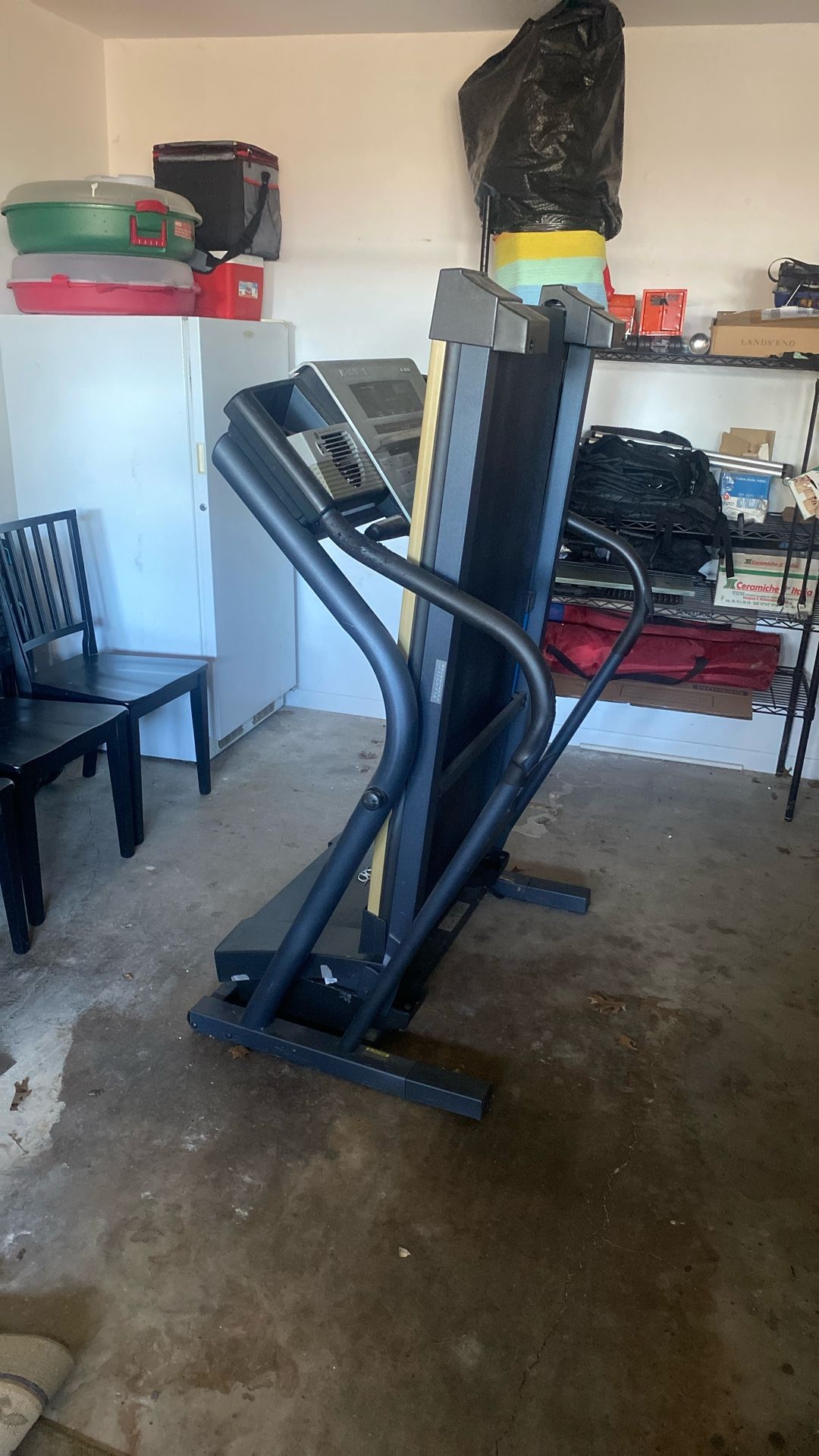 Nordictrack C1900 fold-up treadmill in working condition. Features an inset aromatherapy fan. Dusty and needs new handle wrappings. Some scratches. Pickup and haul away only. Will not deliver or wipe down.