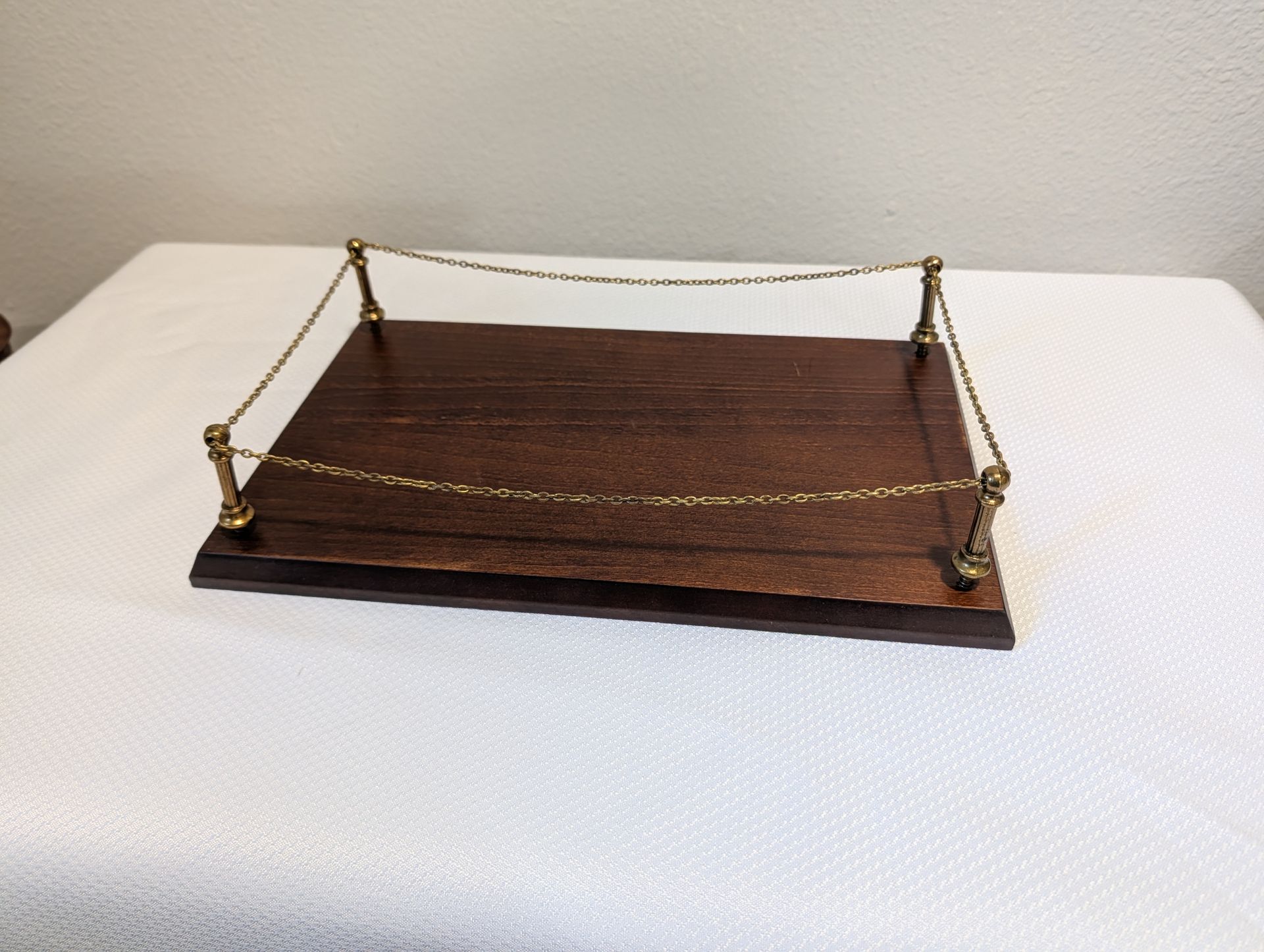 NEW Made in SPAIN Vintage Wood Display Base with Brass Railing & Chain Border for Showcasing Cannon or Cars Model or other Collectibles. Base only , the cannon and car are not included (took the pictures to give you some ideas). I have 10 for sale for $25 EACH.