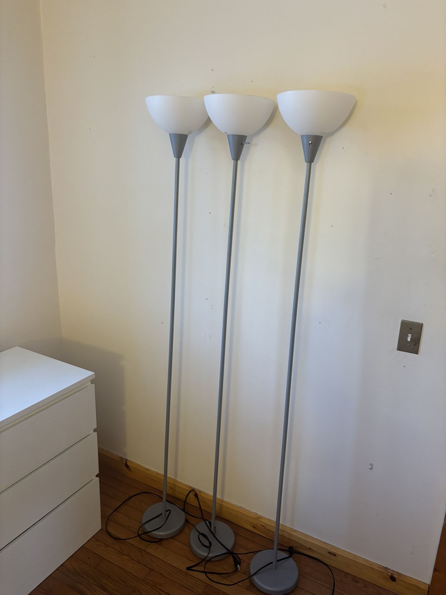 Comes with light bulbs, lighting is a yellow moody tint but you can get new bulbs if you don’t like it. $15 for all 3. They are all dimming lights as well. Pick up/cash only.