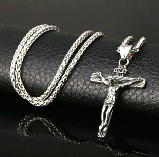 NEW Stainless Steel Jesus Christ Crucifix Cross Pendant Chain Necklace