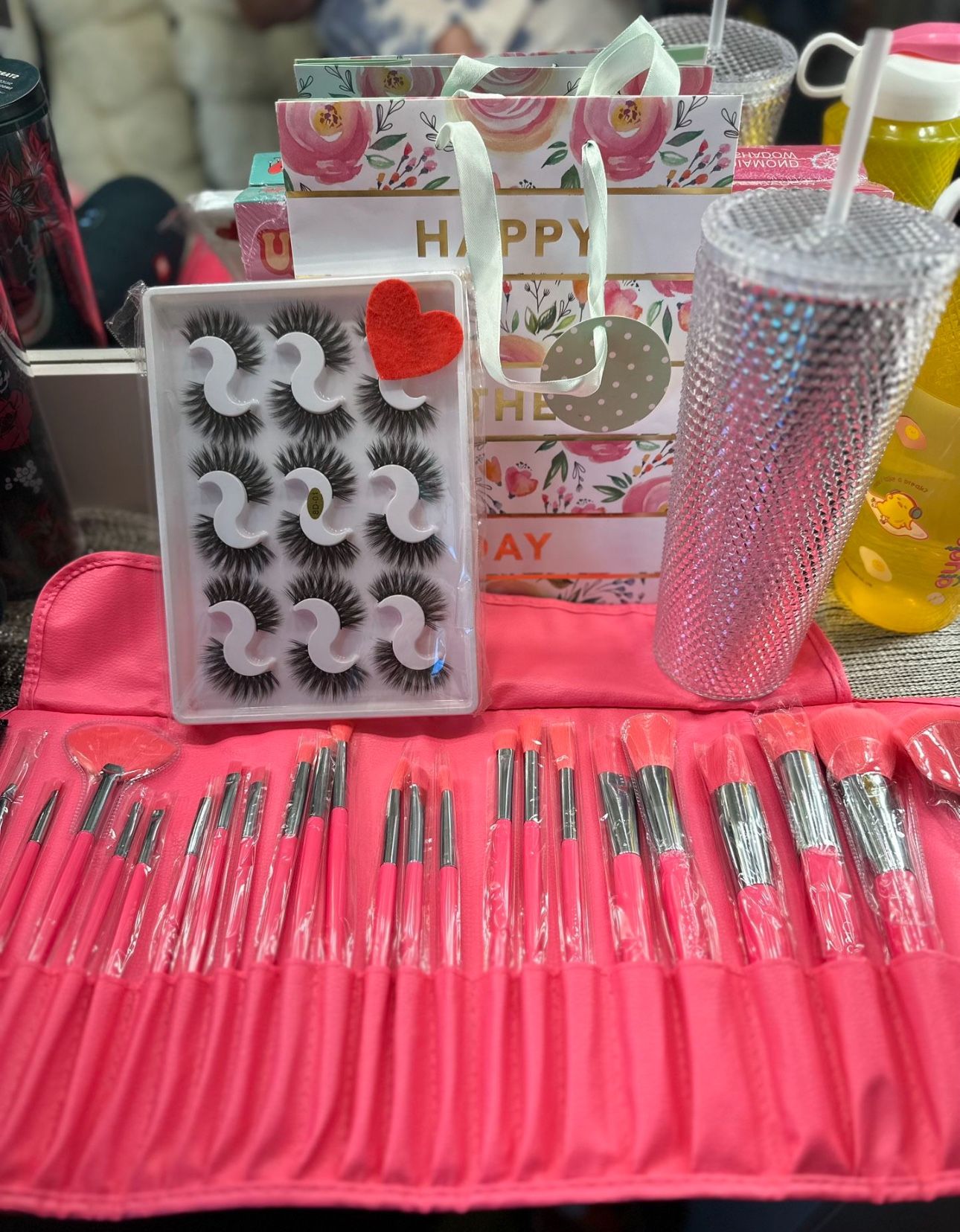 Perfect Gift Bundle / Set Of Neon Pink Brushes / 10 Pairs Or Human Lashes / Cup/ Mothers Day Gift π