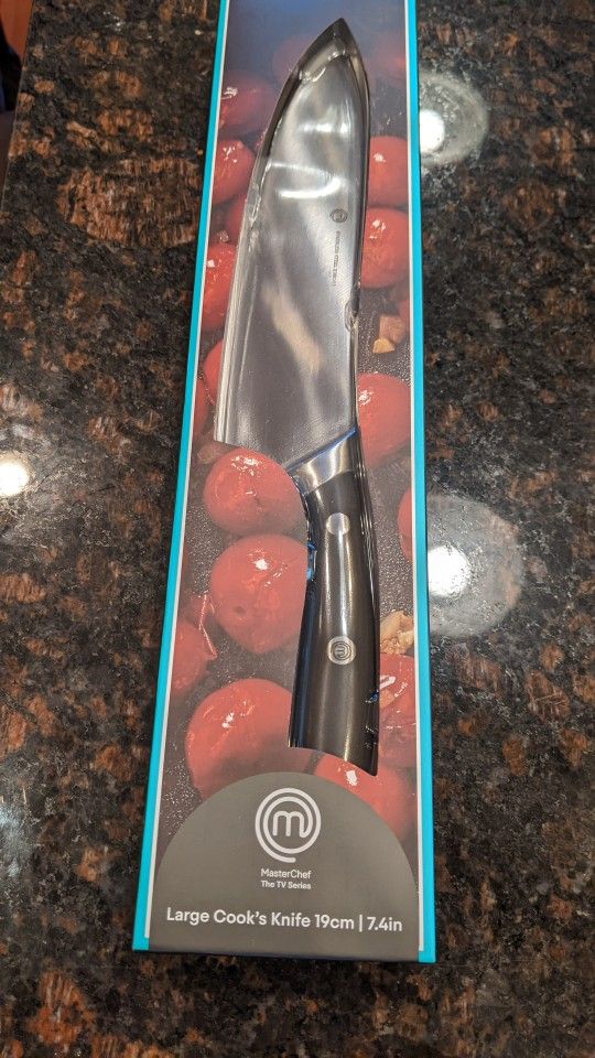 Brand new, never used. MasterChef large chef knife 7.4" and large bread knife.