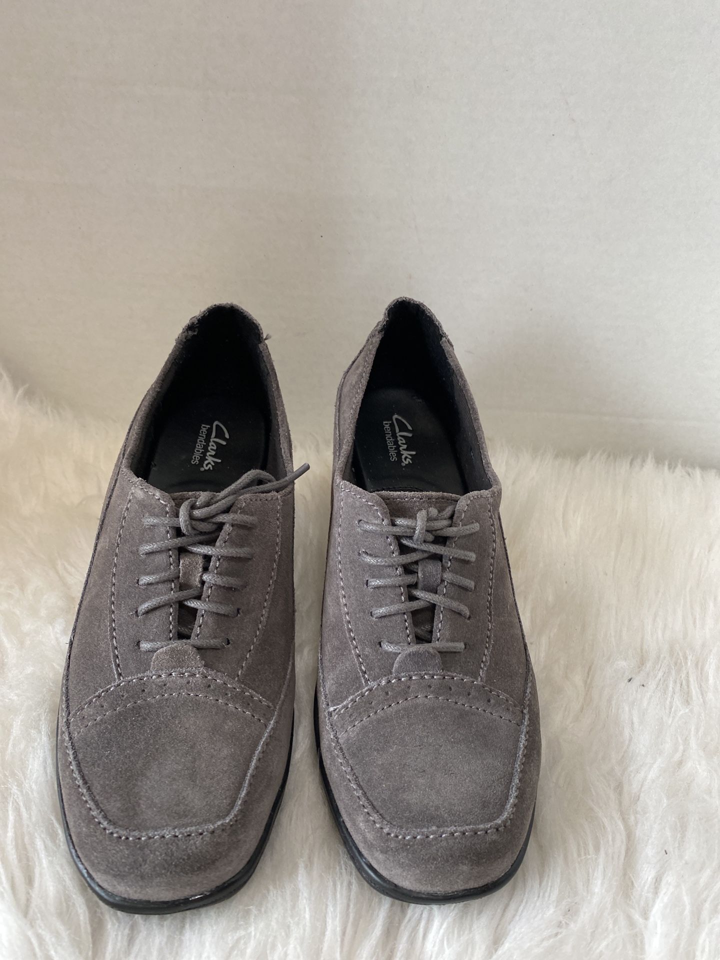 Clarks Bendables Gray Suede 80896 Lace Up Oxford Heels Pumps Womens Size 6