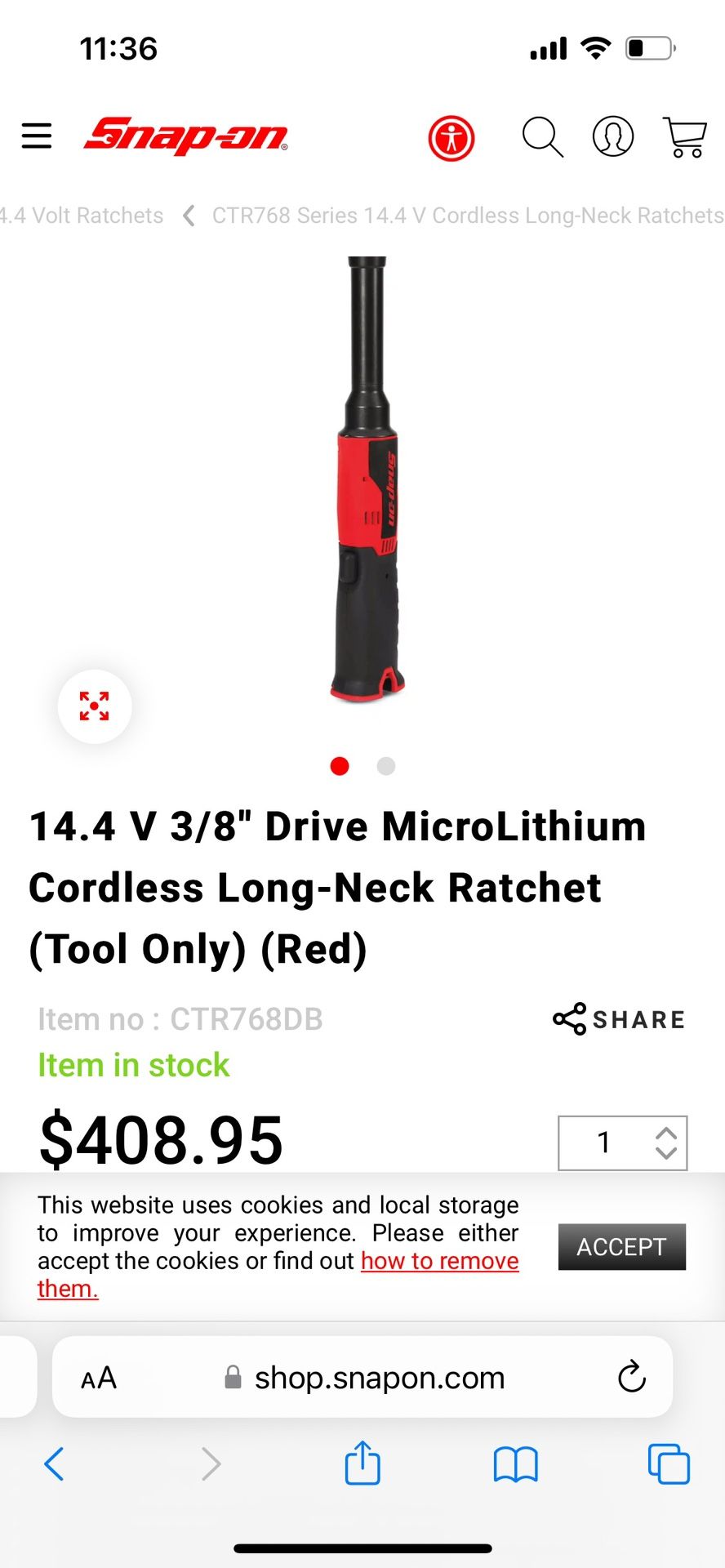 1x Ratchet kit - $530 (tool, 1x battery, charger) 1x ratchet (tool only) - $350