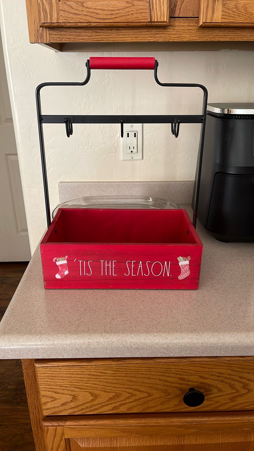 Room for plenty of beverages accoutrements and hanging of 4-6 mugs depending on size. Holiday-ize your beverage station because “‘tis the season.” Mug not included, only to show the possibilities.