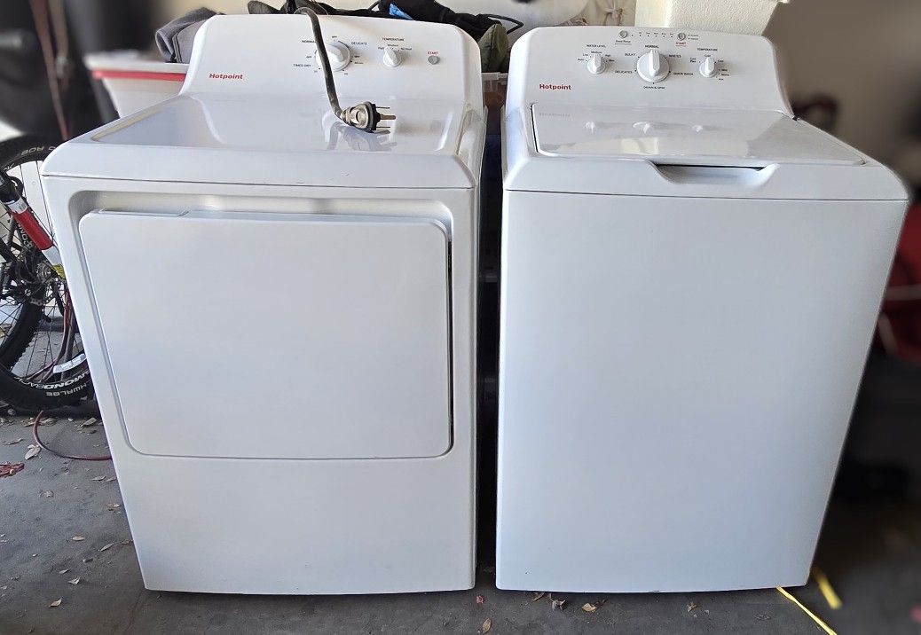 Selling a washer/dryer set. HOTPOINT 6.2 FT³ ELECTRIC DRYER Model: HTX26EASWWW HOTPOINT 4.0 FT³ CAPACITY WASHER Model: HTW265ASWWW These are excellent working condition. There are minor cosmetic scratches, mostly from moving them from house to house. Purchased from Home Depot in 2023 for over $900. This is a great deal! You must pick up - I cannot deliver. Cash or Venmo Located in SE Gilbert near Mesa Gateway Airport.