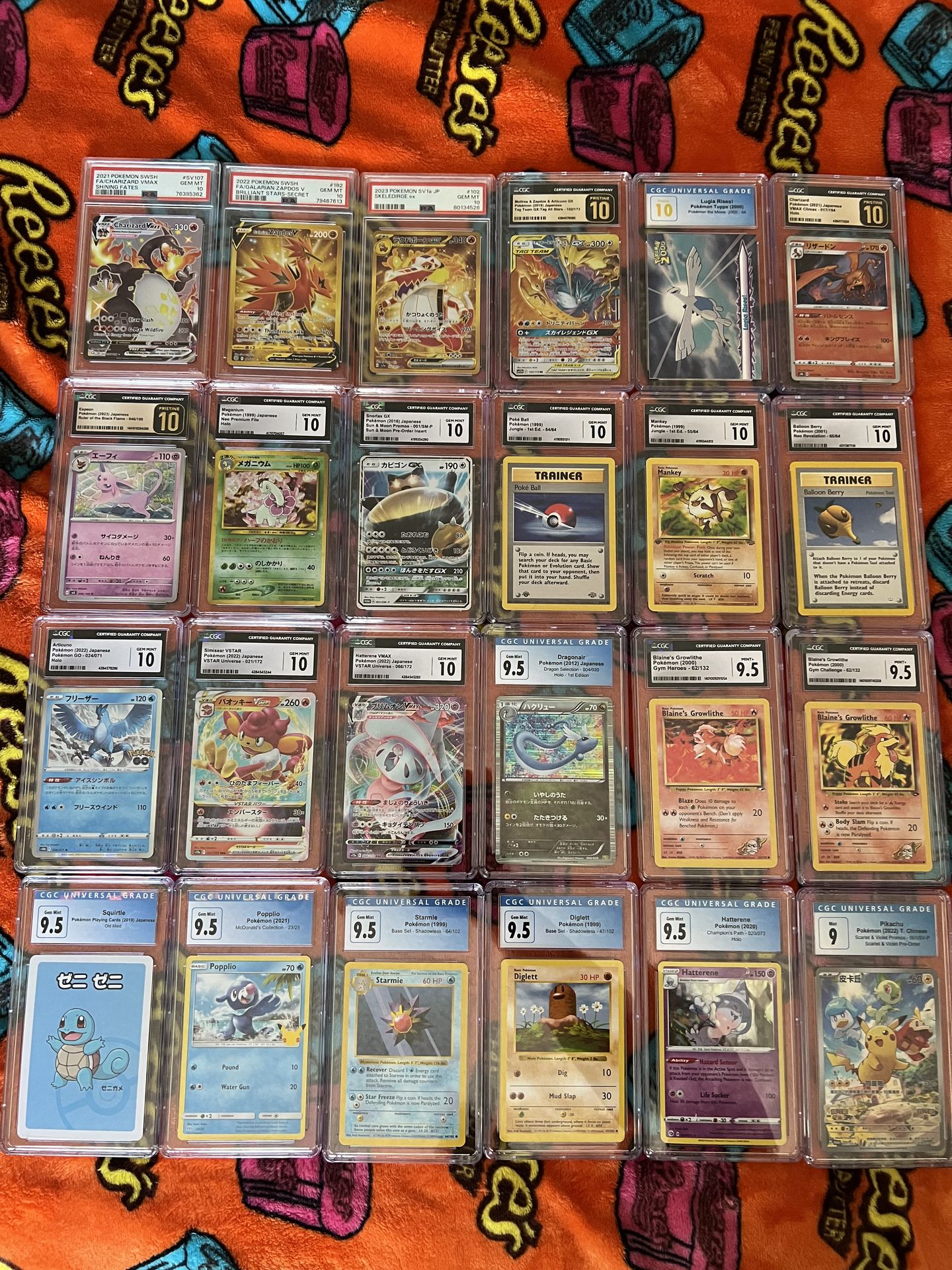 Pokemon graded cards for sale or trade Will trade for sealed , singles and other graded Yes I can seperate or take all for $1000 or best offer All cards are up for best offer so don’t be afraid! It’s like $1200+ for all separately but take all for Charizard v max - $280 Lugia rises - $250 obo Legendary birds - $85 Zapdos - $75 Poke ball - $60 Meganium - $65 Mankey - $60 Snorlax - $35 Starmie - $35 Charizard jp - $35 Skeledirge - $35 Diglett - $25 Blaine’s growlithe (62) - $25 Espeon - $25 Balloon berry - $20 Articuno - $20 Dragonair - $20 Pikachu - $20 Popplio - $15 Blaines growlithe - $15 Simisear - $15 Squirtle - $10 Hatterene v max - $610 Hatterene - $10