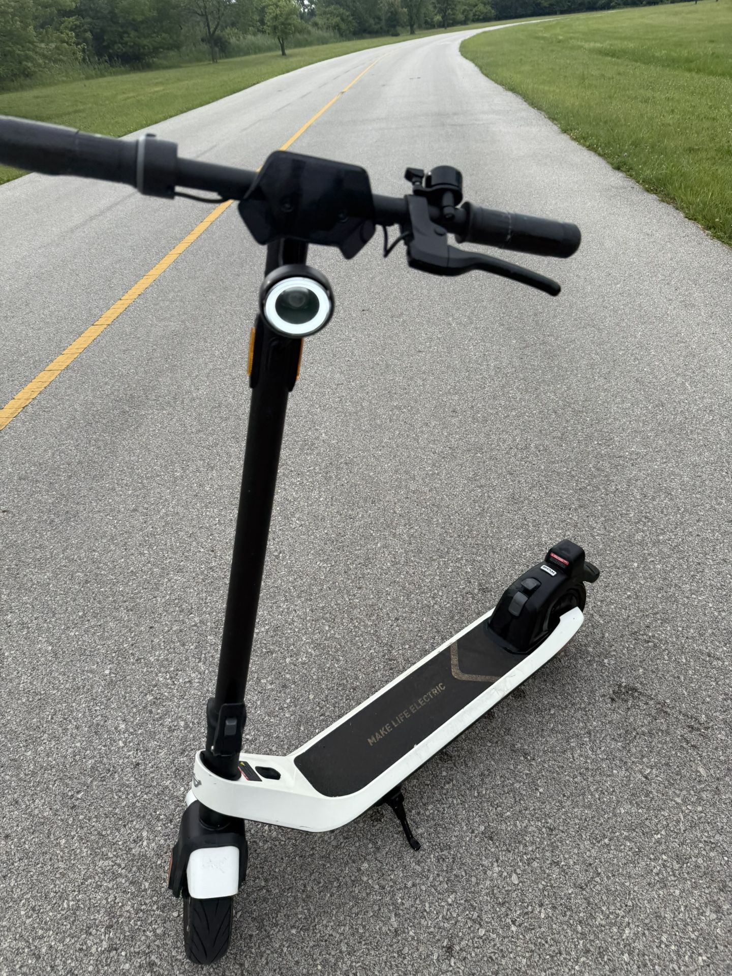 Range up to 24.9 miles/charge Top speed 17.4mph Battery 365Wh 15% hill grade climbing ability 20% wider handlebars (47.0"H × 20.5"W) 13% wider deck (5.2"W × 20.0"L) 15% bigger wheels than competitor kick scooters 10" x 2.3" pneumatic rubber tires with excellent shock absorption Dual-Braking System:Front drum brake + rear electric brake