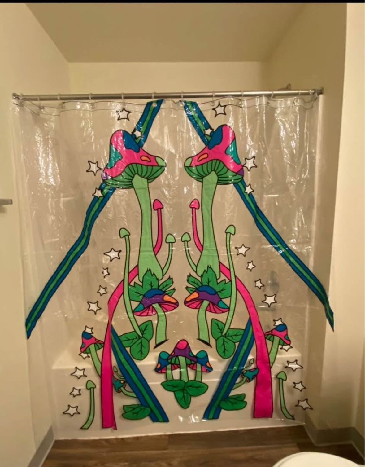 Selling Trippy mushroom shower curtain from DollsKill (sold out on the site) originally paid $26 plus shipping - hoping to get $20 for it. But I’m flexible! Great condition Selling because I got a new one and my style for interior design has changed