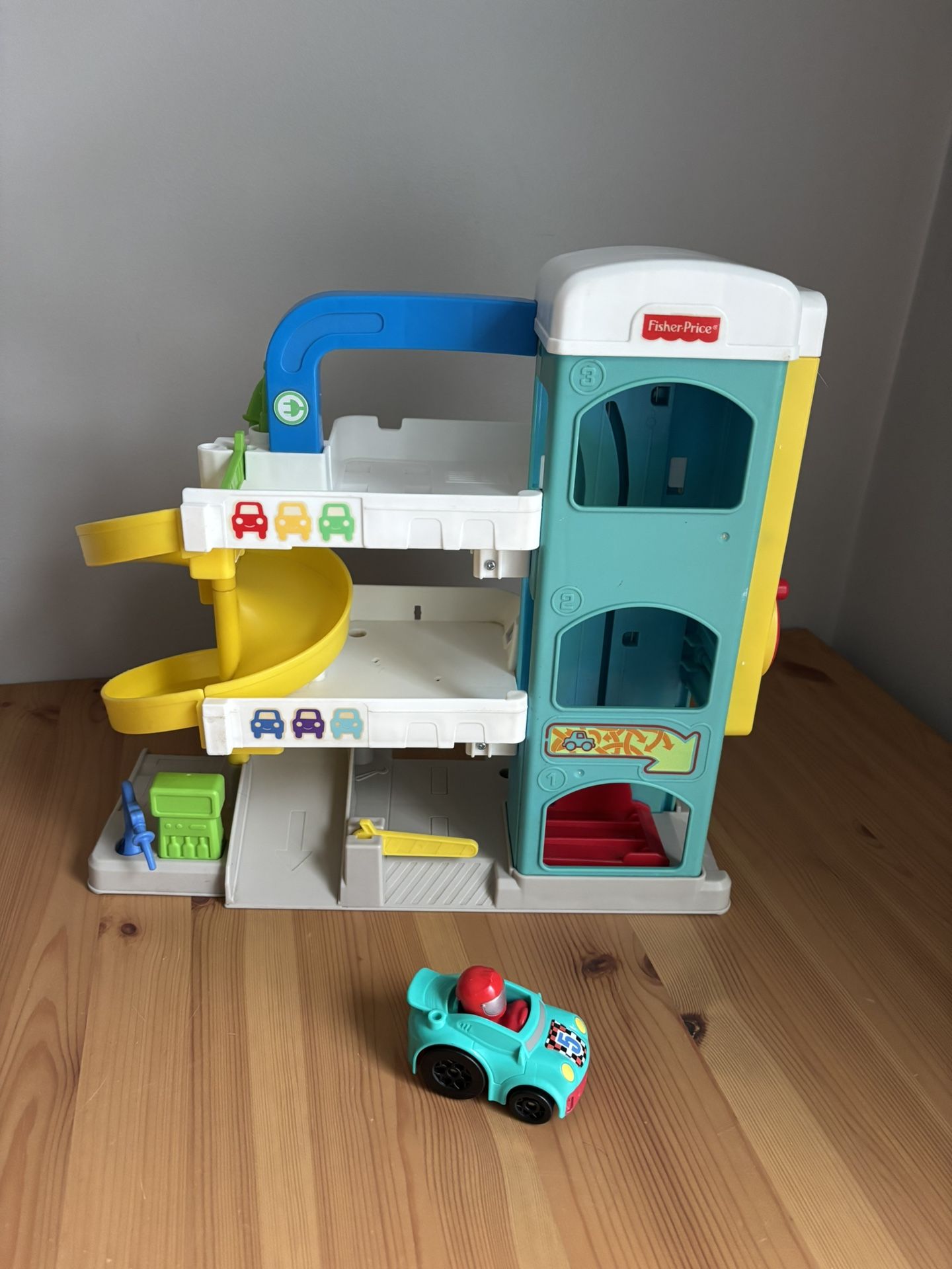 Fisher Price Little People Wheelies Helpful Neighbor's Playset Garage Ramp & Race Car