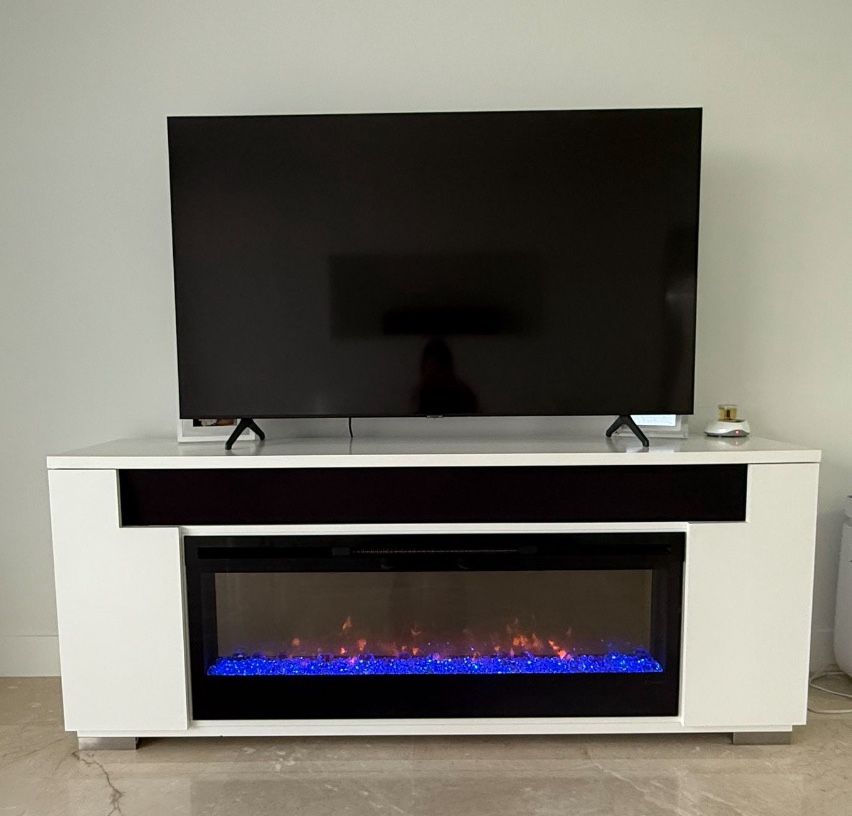 Electric Fireplace Tv Stand With Speaker, Heater And Lights