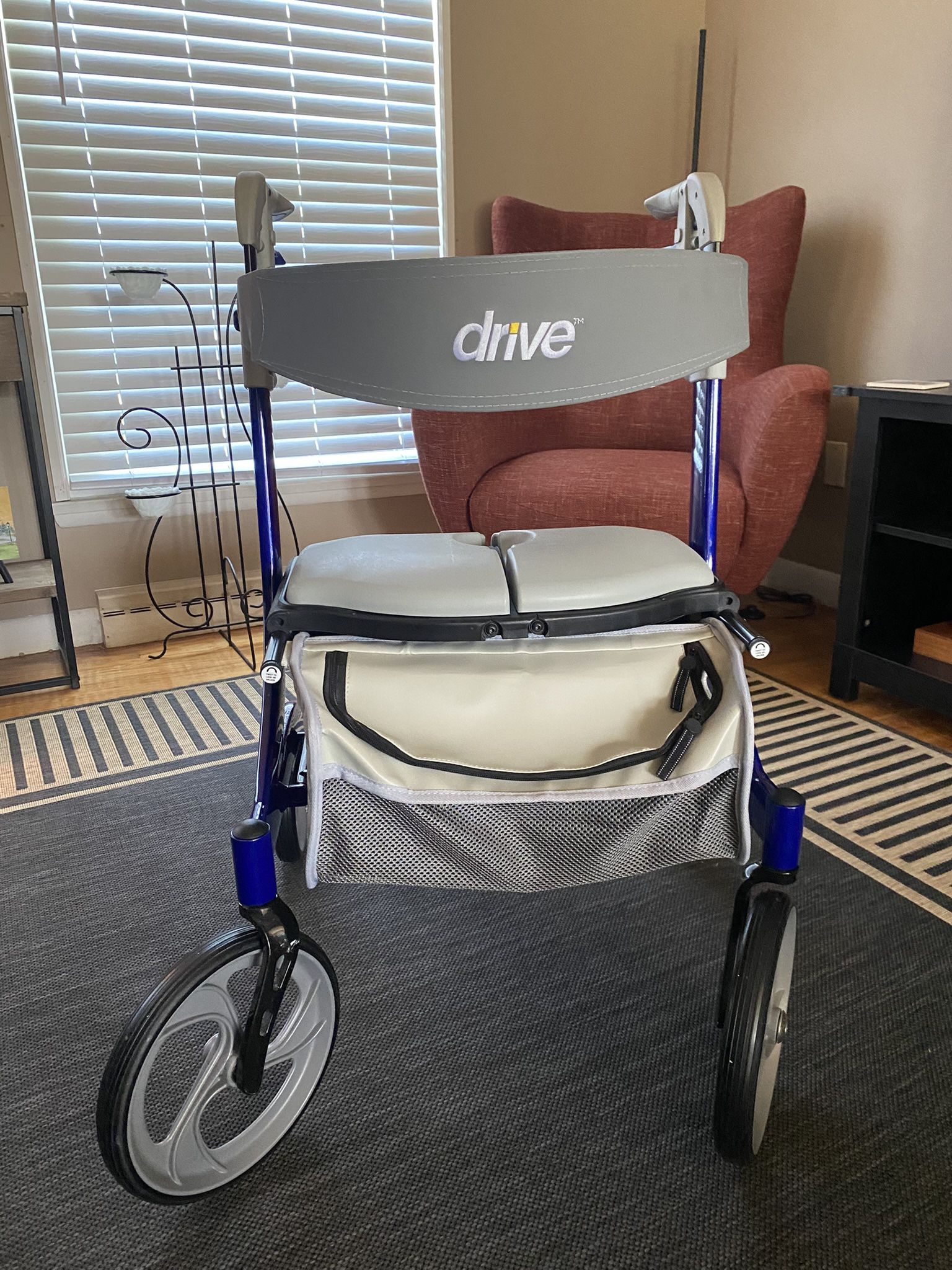 Nitro DLX Rollator walking aid by Drive. In excellent condition - only ever used indoors; clean and working like new. Adjustable and foldable for transport or storage. Includes all original parts (attached bag, back rest) and operating instructions. Best item of its kind that we found for elder use.
