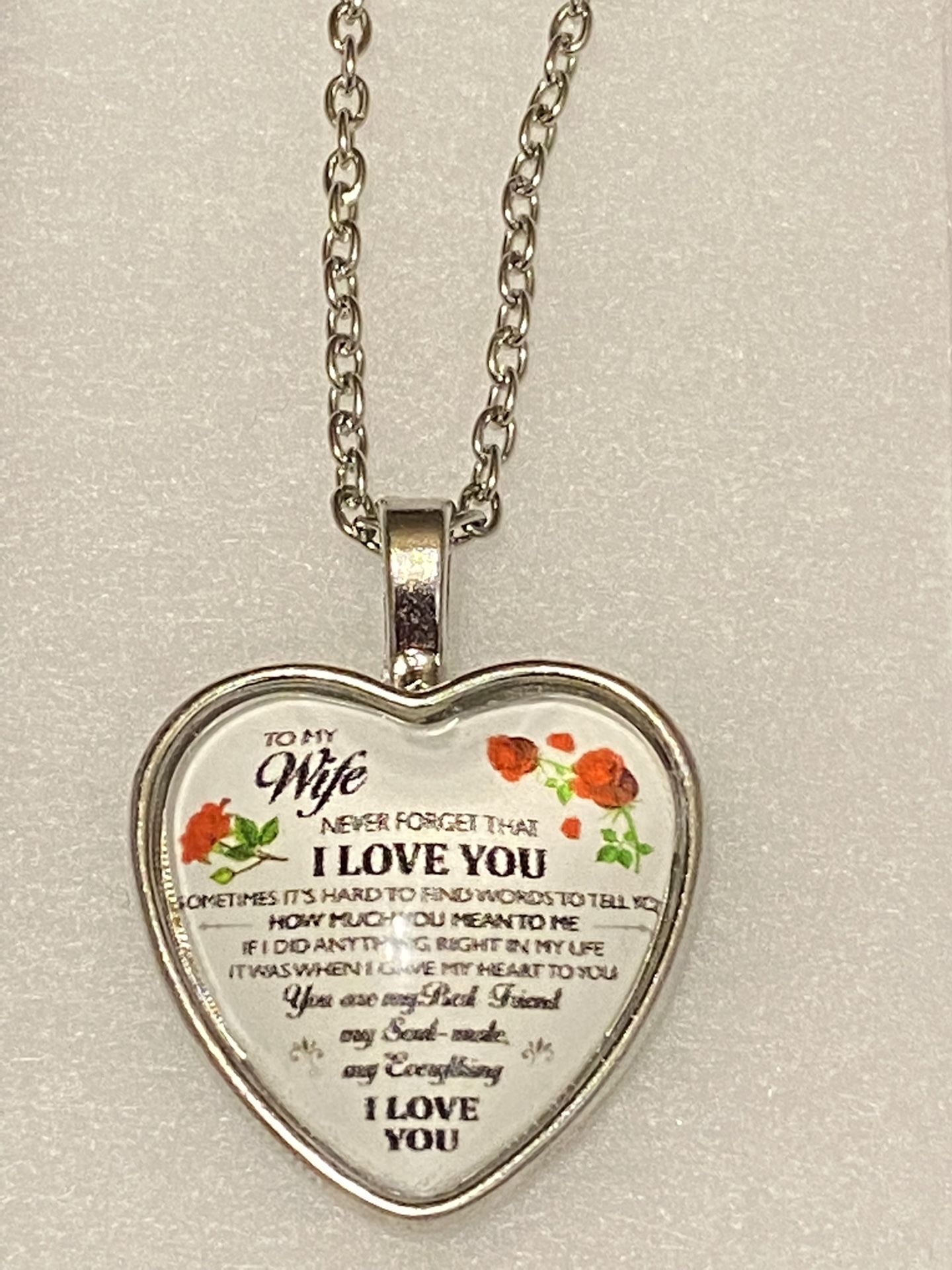 Women’s Silver Plated I Love You Wife Expression Necklace 22