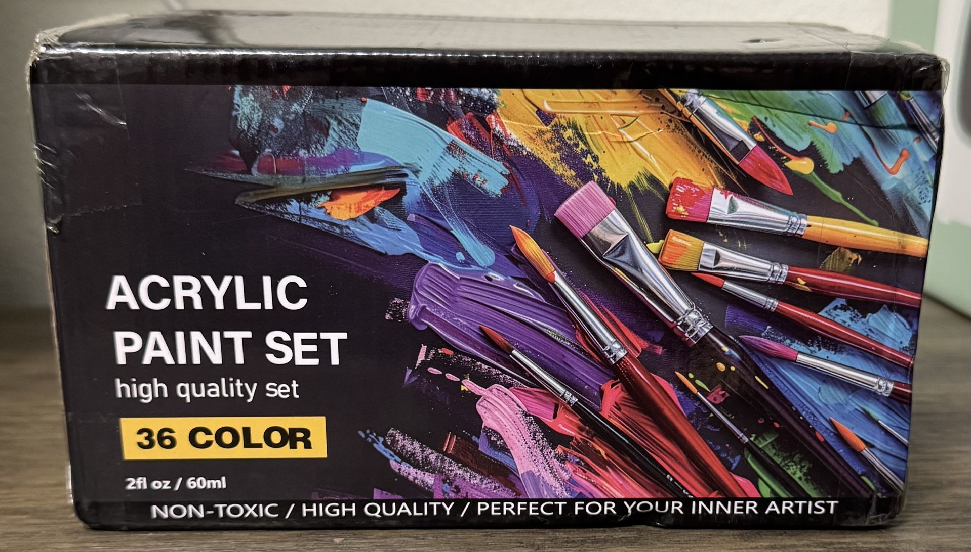 Acrylic Paint Set 36 Colors(2oz /60ml) with 12 Brushes,Rich Pigmented, Premium Acrylic Paints for Canvas Wood Glass Rock Leather Painting, Art Craft Paint Supplies No returns or exchanges Brand new. Located in Perris. Cash Only!