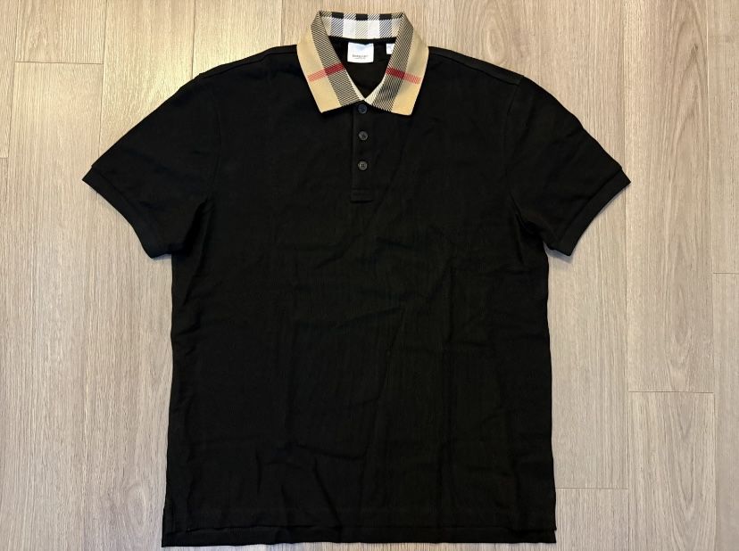 Burberry Black Polo Shirt - Check Collar - Size Large
