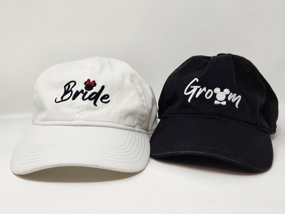 Disney Mickey and Minnie Mouse Bride and Groom Baseball Hats/Caps Adjustable $45 for Both