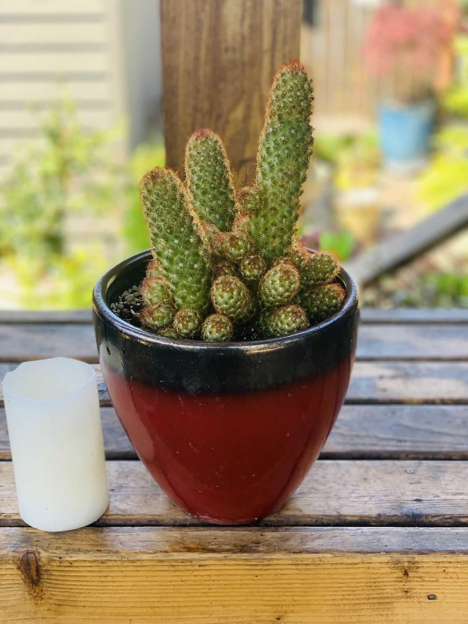 Please check out my other posts. Please read all of the description below, including clicking on “read more.” The pots are not for sale alone, though the plants might be for sale without a pot. Live cactus. The pot has a hole in the bottom for drainage. It’s currently outside. Pot dimension is 8”x8”x7.5” With plant the height is 14.5” This cactus does best in very high direct light and low water. It’s been replanted using miracle grow root liquid fertilizer. I meet in downtown Renton. Candle is for size comparison.