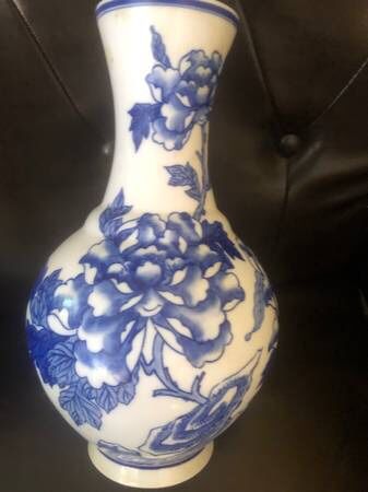 BEAUTIFUL CHINESE BLUE & WHITE FLORAL VASE