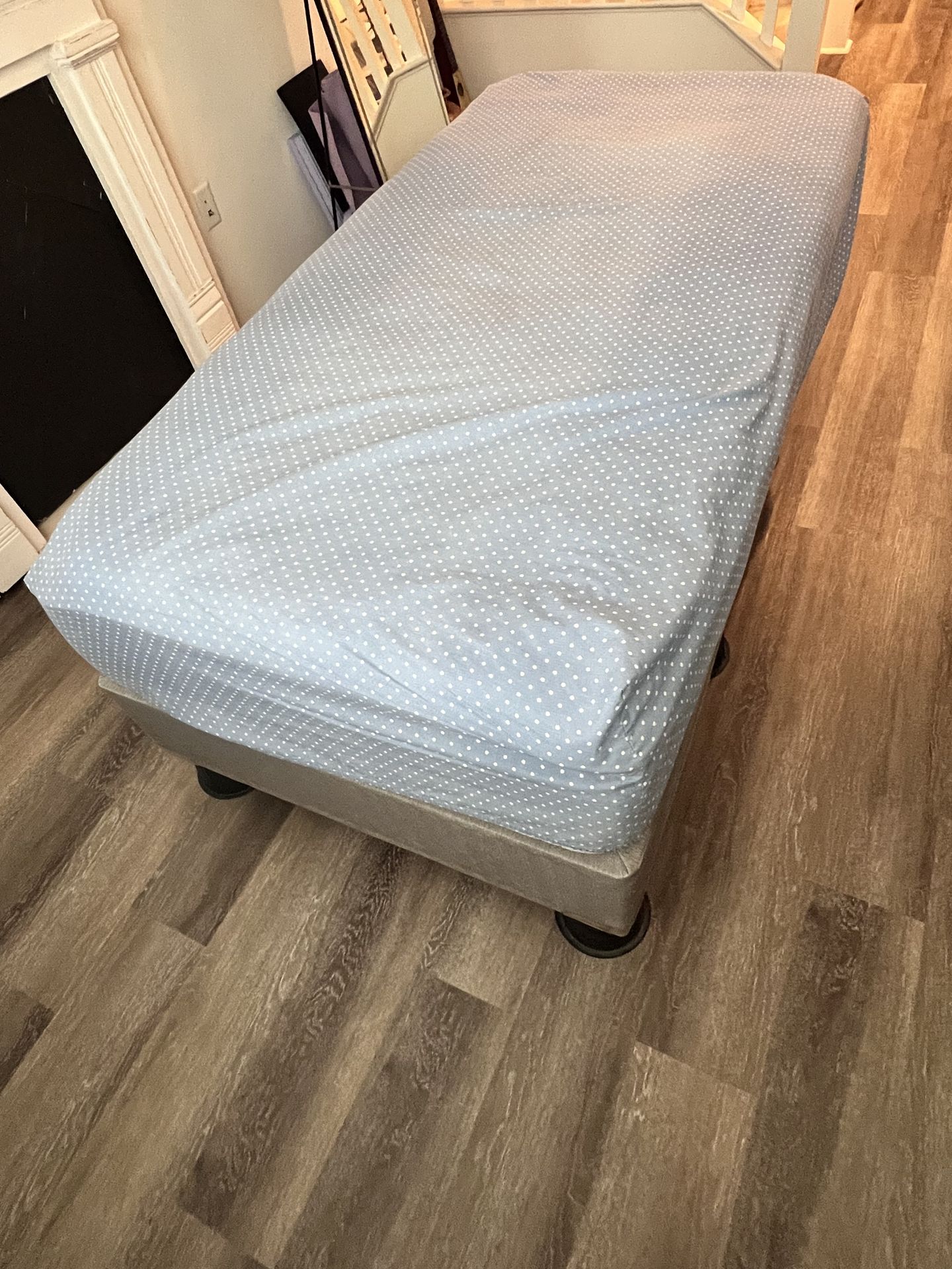 Twin bed that’s very comfortable that comes with box spring and stands! Pick up only.