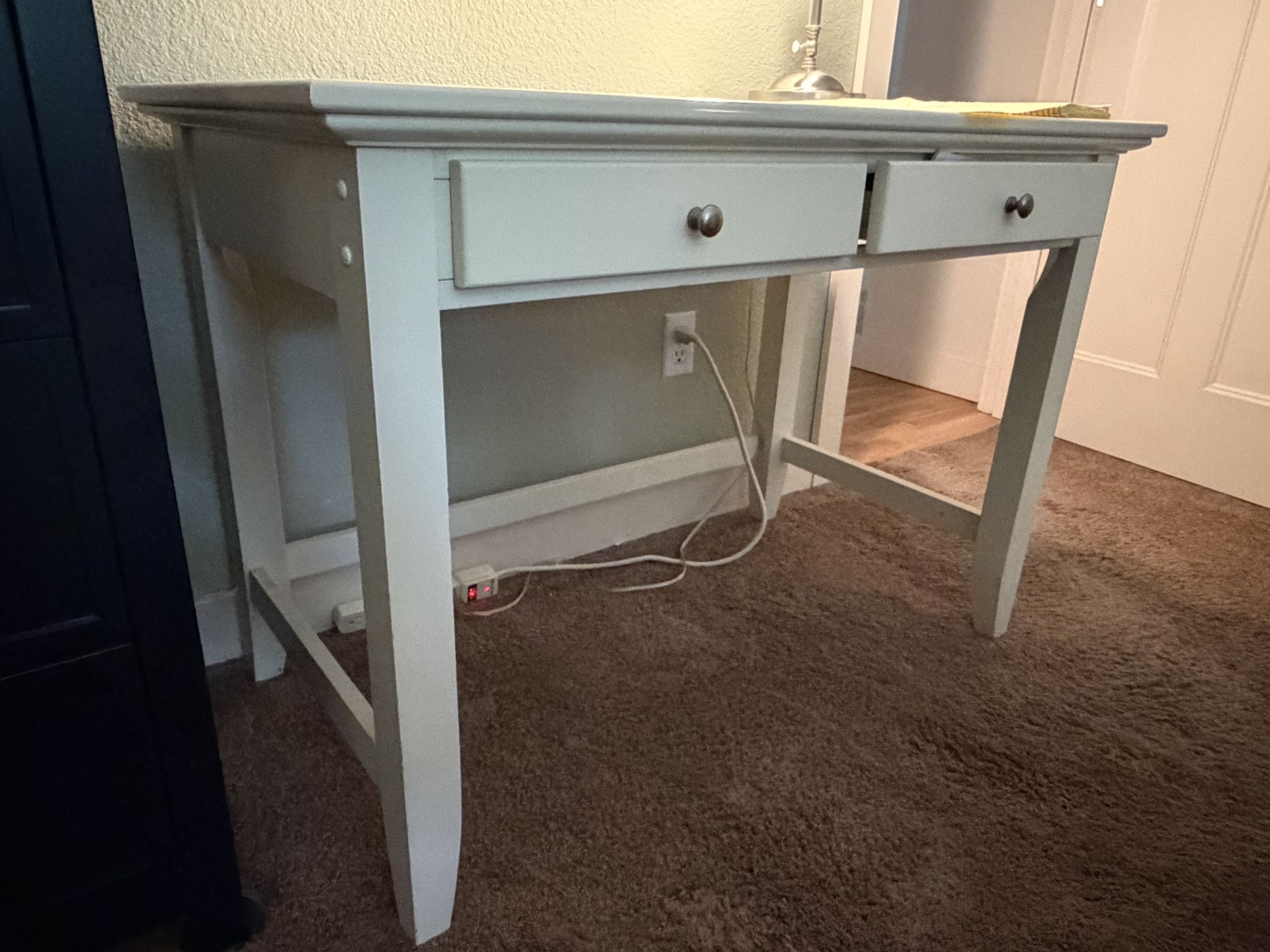Small kid’s white desk, pre-teenager… dimensions 42 inches wide 29 inches high 24 inches deep with two drawers… $35. Nice little desk in great condition