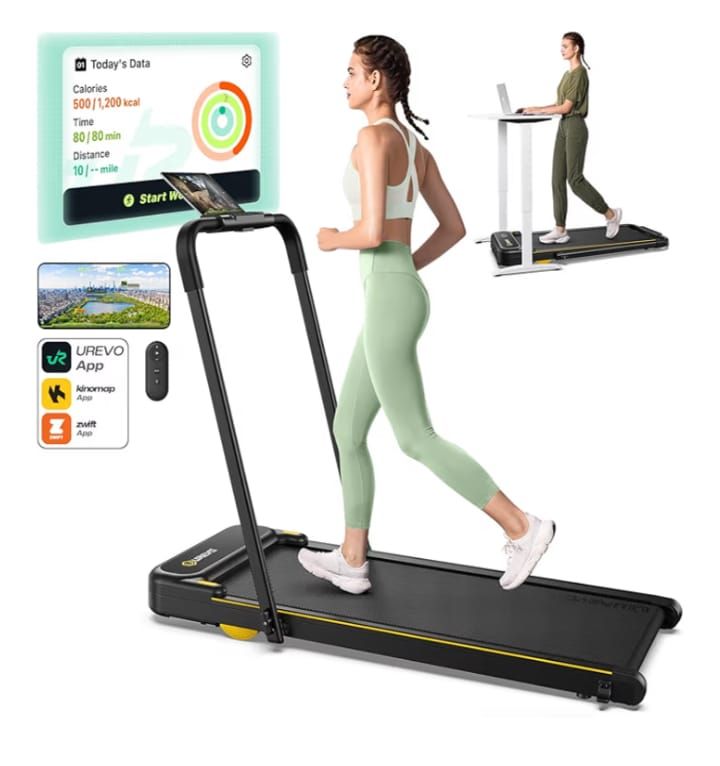 UREVO Strol 2E Smart 2-in-1 Folding Treadmill, Compact Walking Pad with Safety Handle, Plug and Play, Standing Desk Treadmill with Dual LED Display, Smart APP, Walking or Running for Home Office
