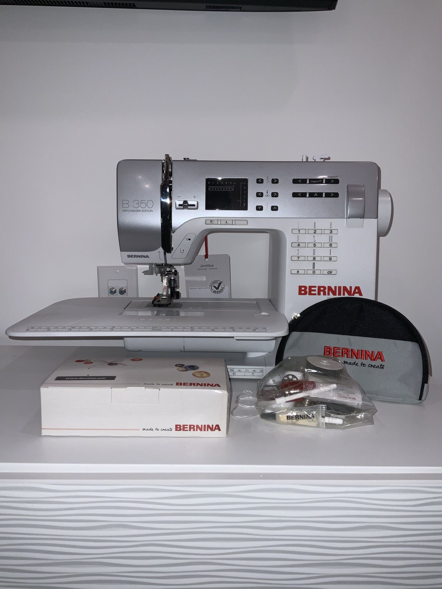 Open Box Bernina B350 for sale. This is truly a wonderful sewing machine, however I don’t have time to learn how to use it so I am selling. Unboxed and covered, never used with all of the tools, books and sewing kits.