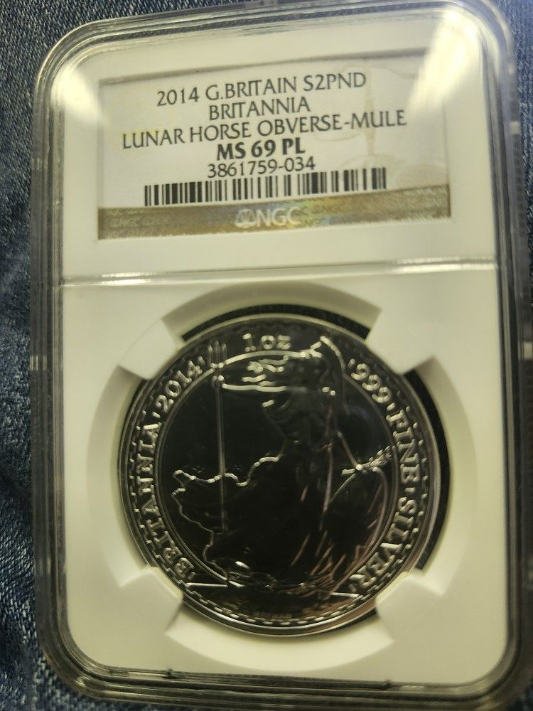 2014 mule coin Great Britain S2PND Lunar Horse Obverse Graded MS 69 PL