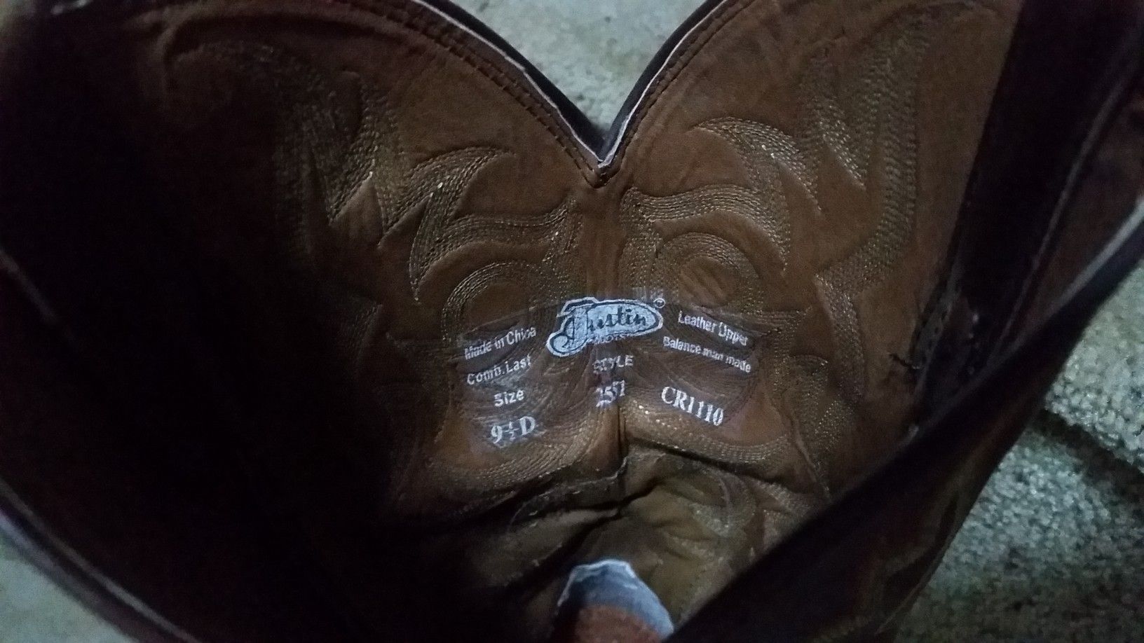 Size 9.5 Medium width Worn twice and put in the closet Look at the boot tread and you'll see no wear on them.