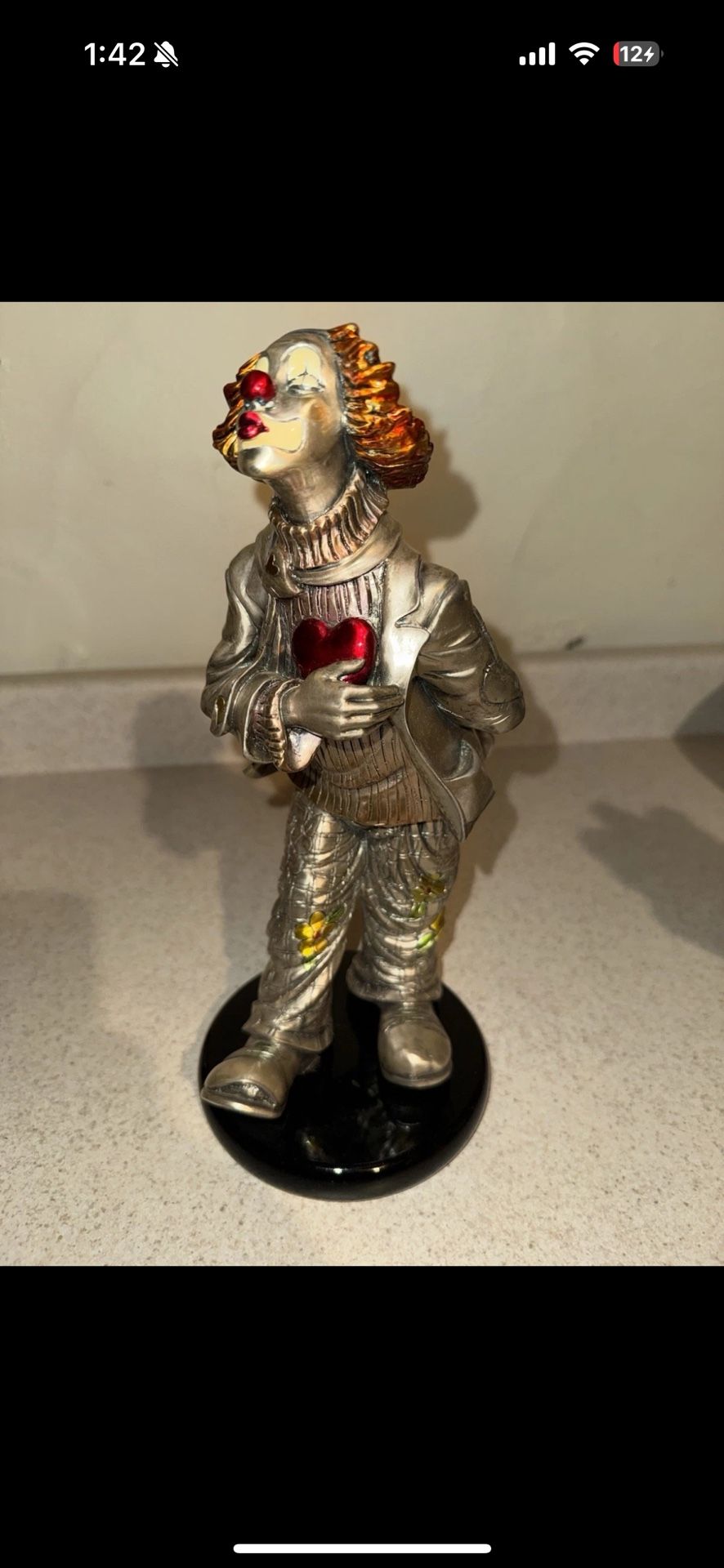Mida Argento Silver Hand Painted Kissing Clown Italian Figurine.